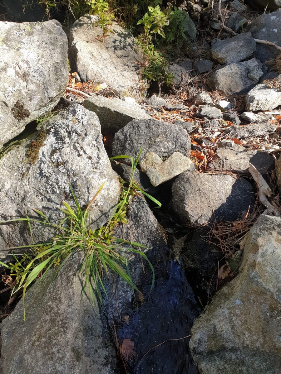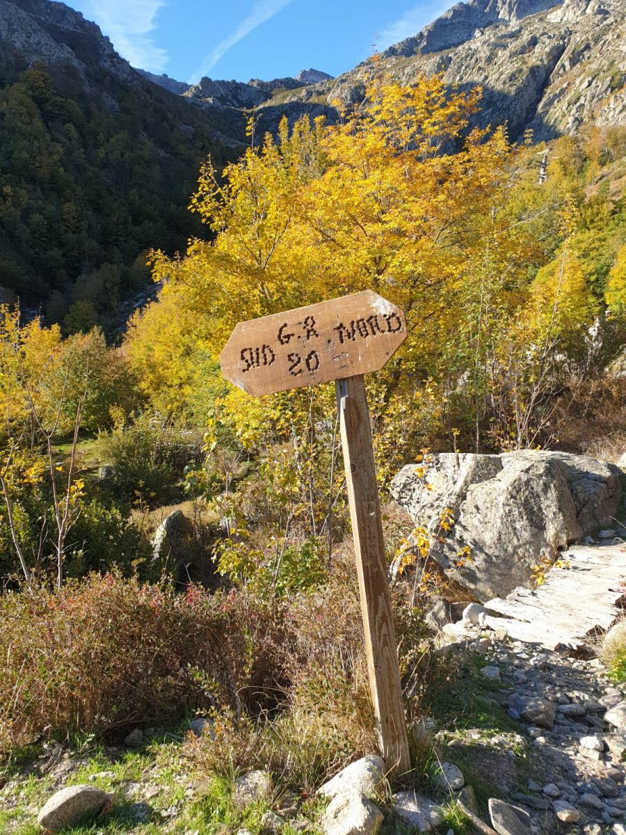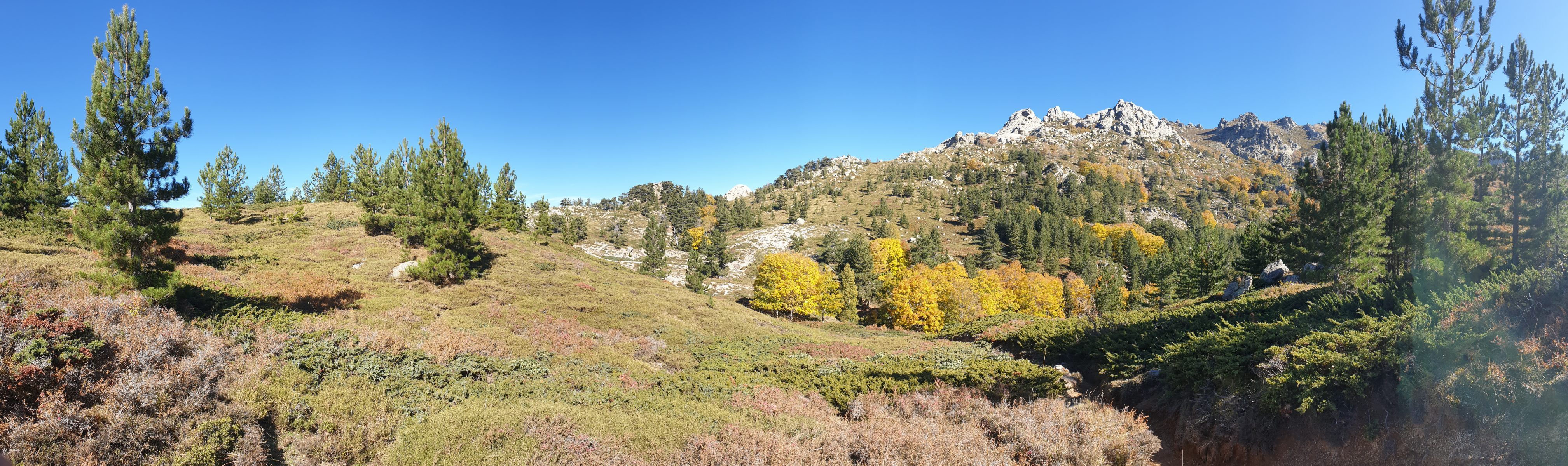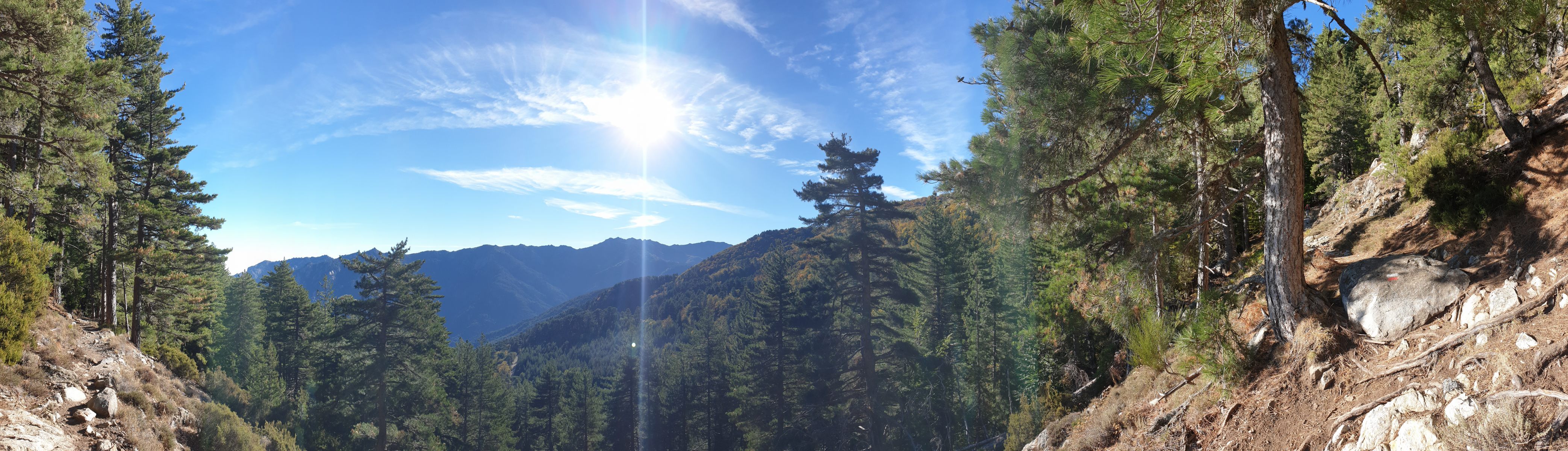 Realisiert habe ich meinen Fehler erst, als der Weg entlang dem Ruisseau de Casso zur Strasse abbog. Zum zurücksteigen konnte ich mich nicht motivieren, und so folgte ich halt der originalen Wegführung des GR-20. Diese ist — man muss es sagen — recht langweilig. Über gut sechs Kilometer traversiert man durch bewaldete Hänge bis zur Bergerie de Ghjalcone, wo der Weg ins Tal des Ruisseau Guado Alla Macchia absteigt, auf der anderen Bachseite kurz weitertraversiert und danach auf einer üblen Schotterpiste zum Col de Verde absteigt. Wahrlich kein Prunkstück, diese Waldläuferei!