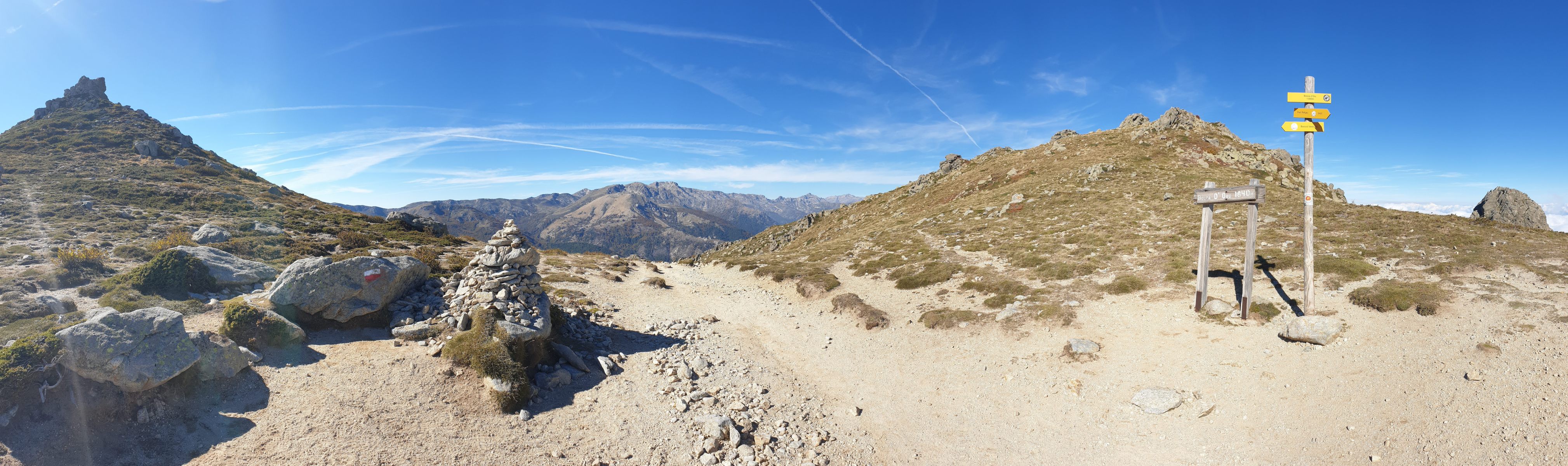 Die Nacht war erneut affenartig kalt gewesen, und ich fühlte mich gar nicht mehr gut im Schuss. Dazu kam, dass meine Essensvorräte langsam zur Neige gingen. Mit kratzendem Hals und steifen Gliedern hockte ich im ersten Licht auf einer Steinbank und fragte mich, wie das wohl weitergehen sollte. Direkt nach dem Loslaufen machte ich gleich bei der ersten Abzweigung einen Navigationsfehler, indem ich Richtung Bergeries de Traggette traversierte anstatt zum Grat Richtung Monte Renoso hochzusteigen, wie ursprünglich geplant.