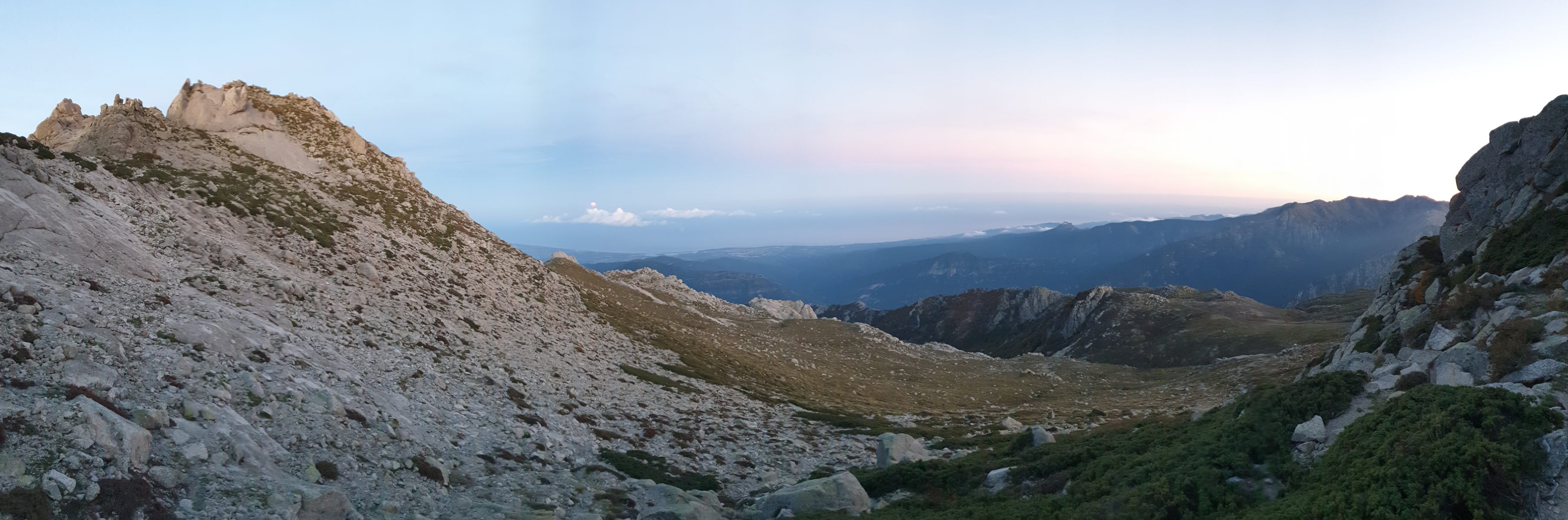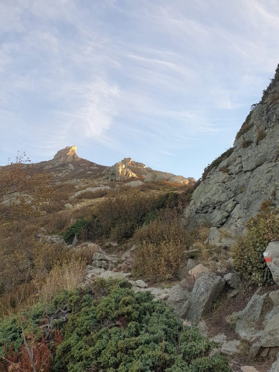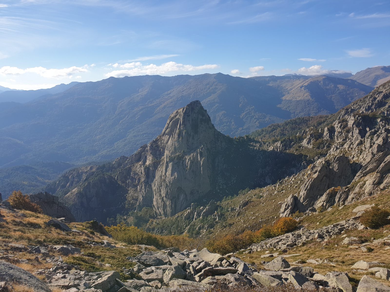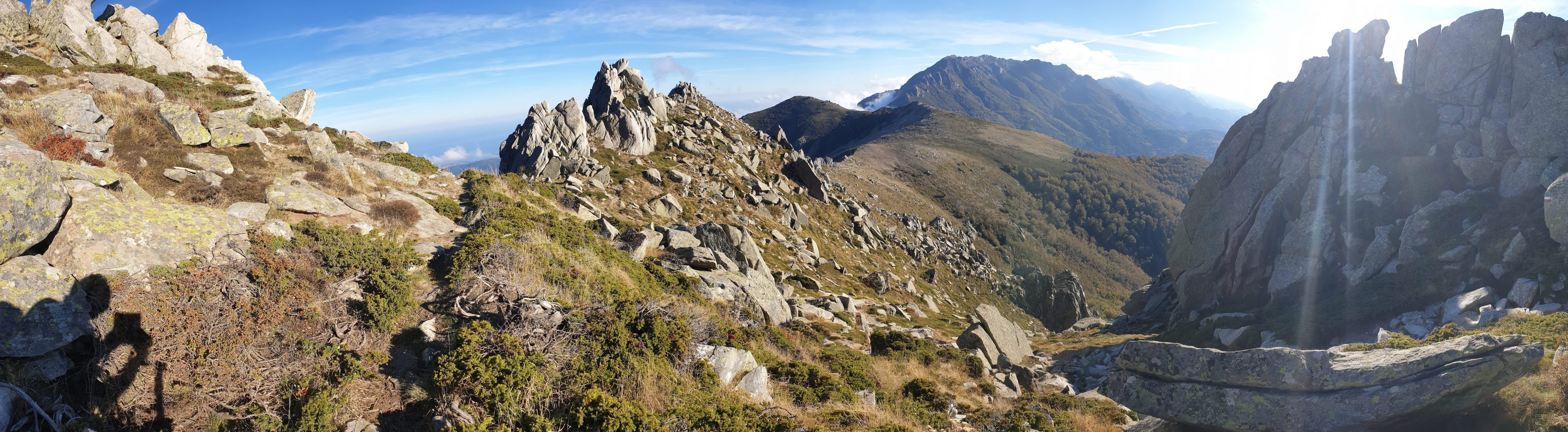 Oben angekommen betritt man eine felsige Mondlandschaft, durch welche eine weitere Höhenwanderung über rund 2 Kilometer den Monte Formicula (1981) überwindet und dem Kamm folgt. Zum Schluss steigt der Weg über die Südflanke einer Schulter zum Refuge d’Usciolu (1750) ab.