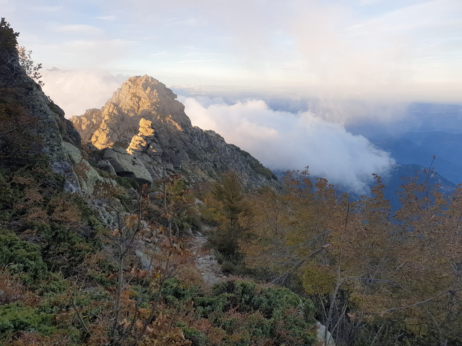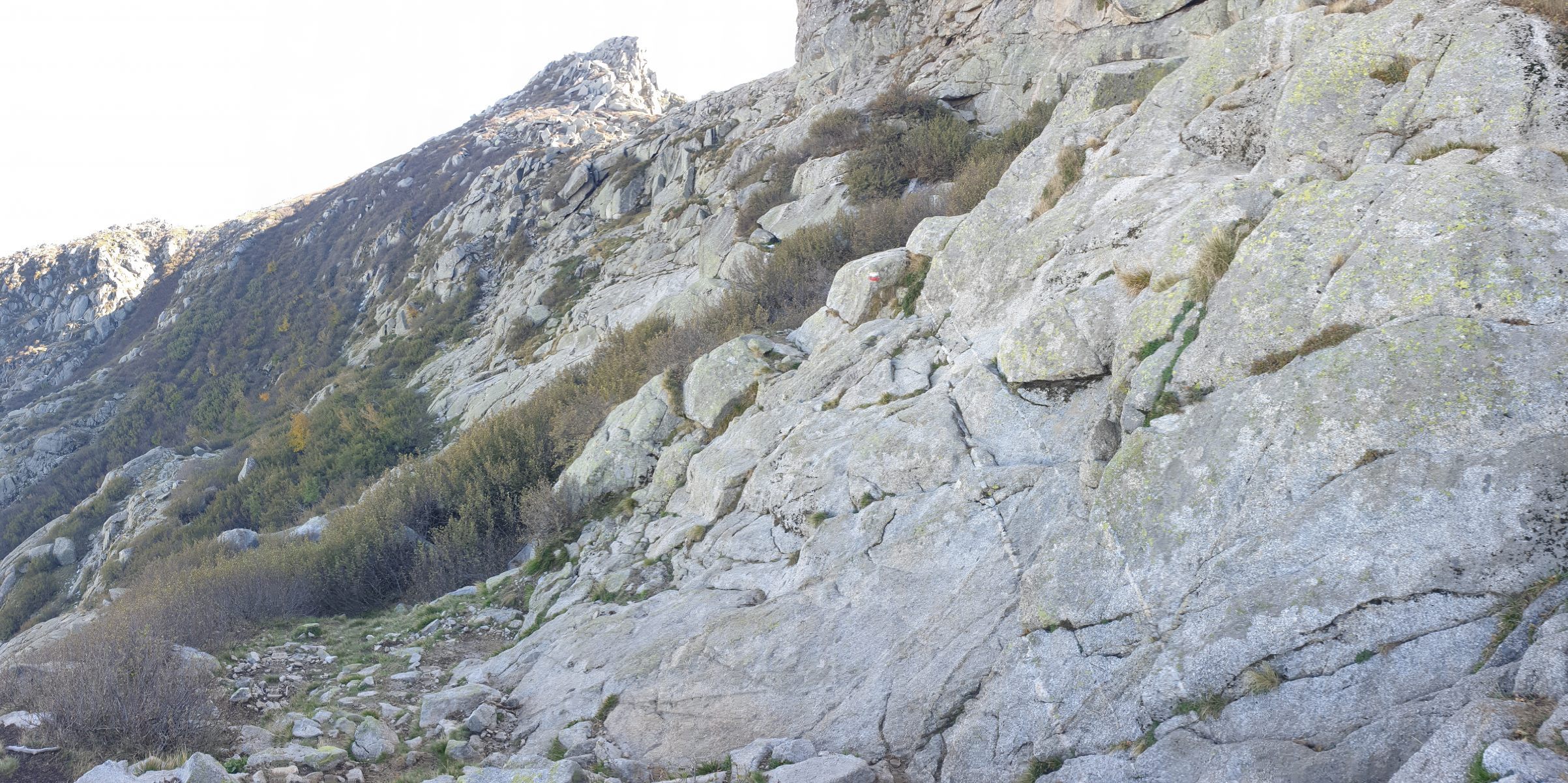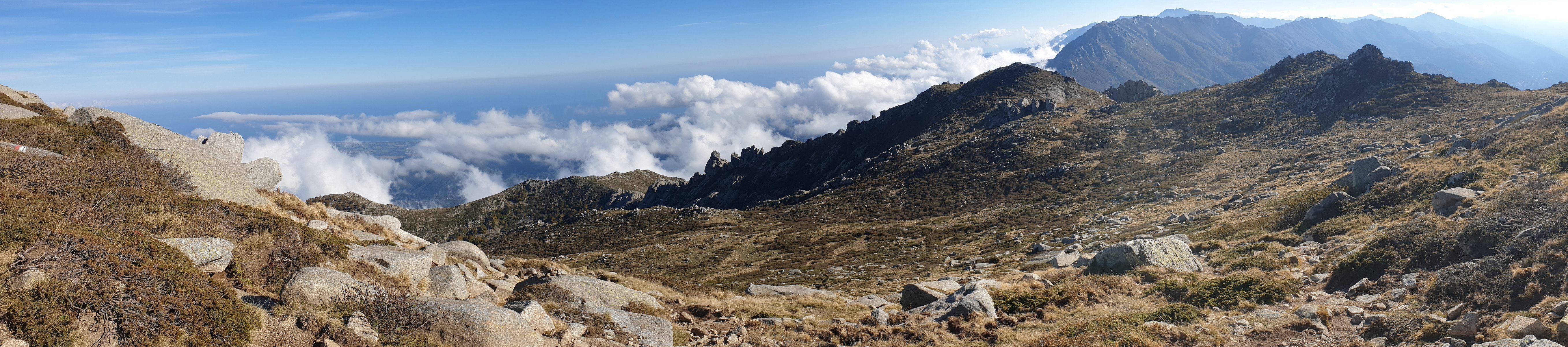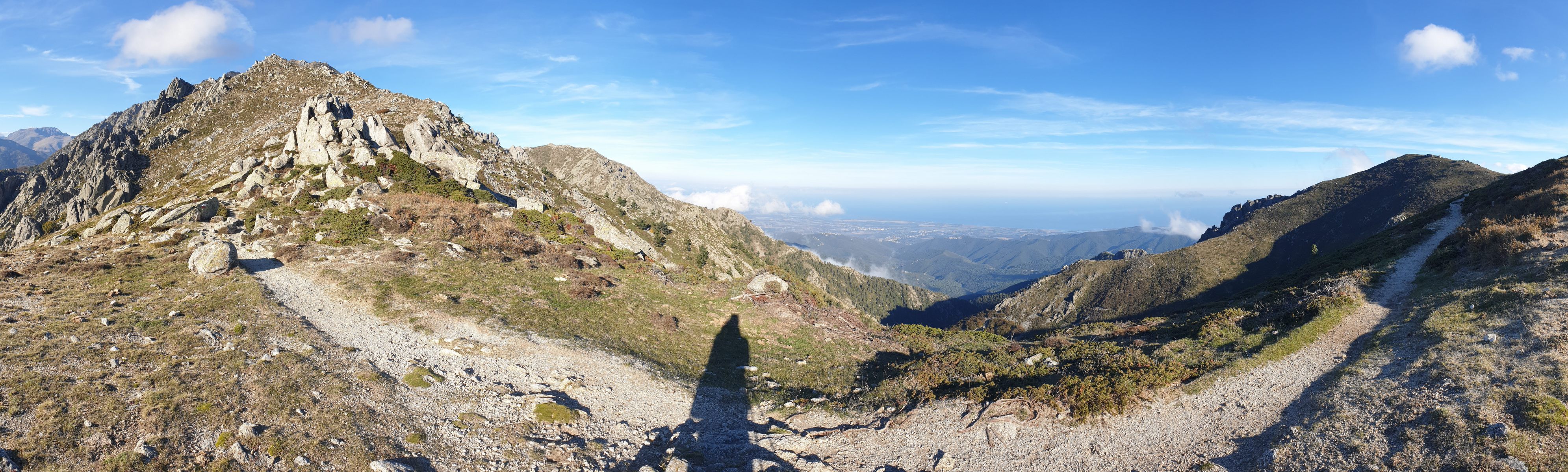 Oben angekommen betritt man eine felsige Mondlandschaft, durch welche eine weitere Höhenwanderung über rund 2 Kilometer den Monte Formicula (1981) überwindet und dem Kamm folgt. Zum Schluss steigt der Weg über die Südflanke einer Schulter zum Refuge d’Usciolu (1750) ab.