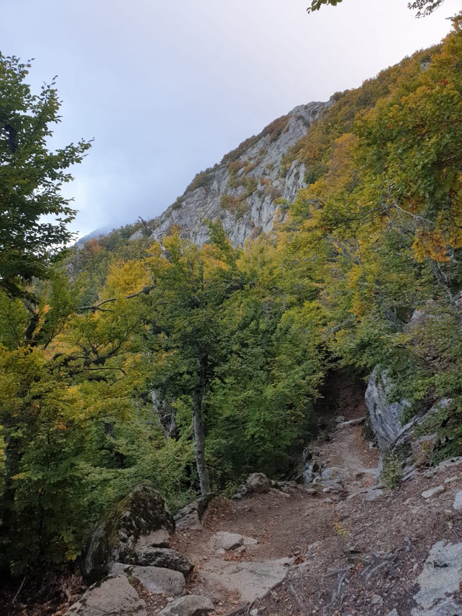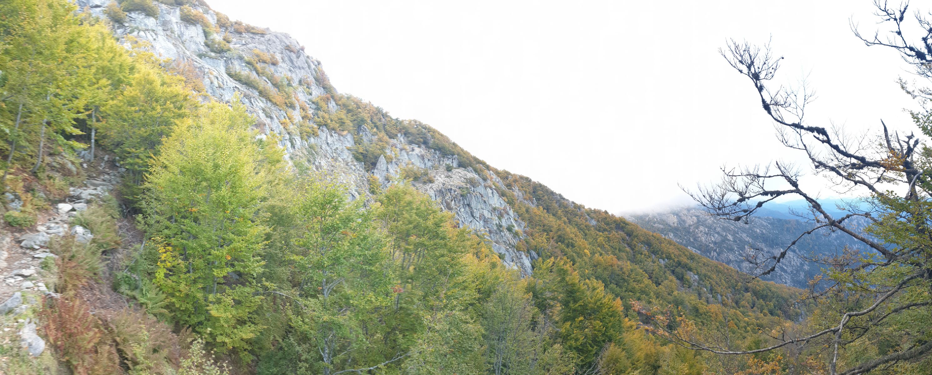 Vom Refuge de Prati (1820) in angenehmer Höhenwanderung über gut 5 Kilometer zur Punta della Cappella (2041) und hinab zur Bocca di Lapara (1525). Dort wechselt der Charakter wieder einmal schlagartig! Die gut einen Kilometer lange Traverse durch die Ostflanke der Punta Mozza verläuft durch dichten Buchenwald. Der Aufstieg zum Sattel ist steil und rauh.
