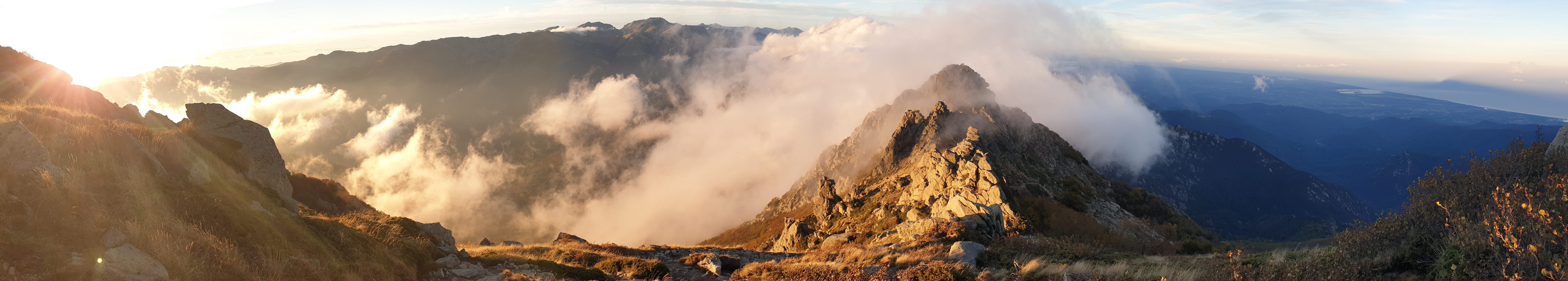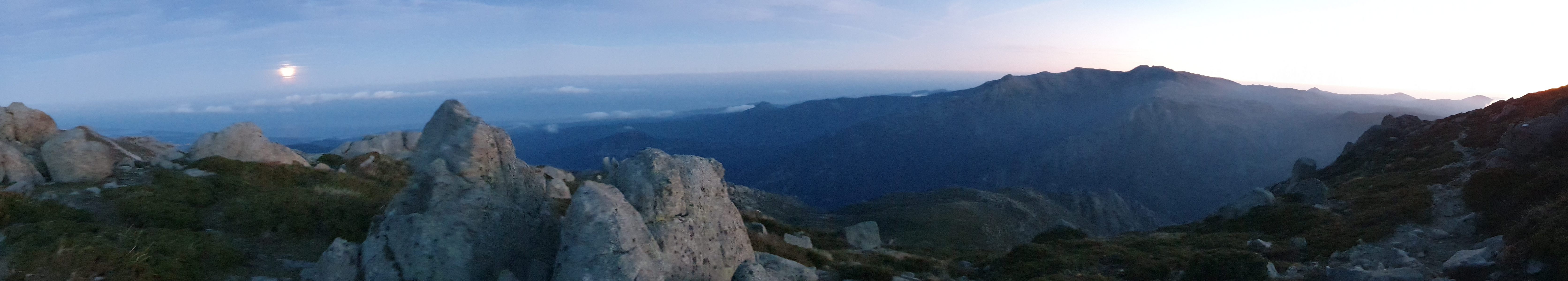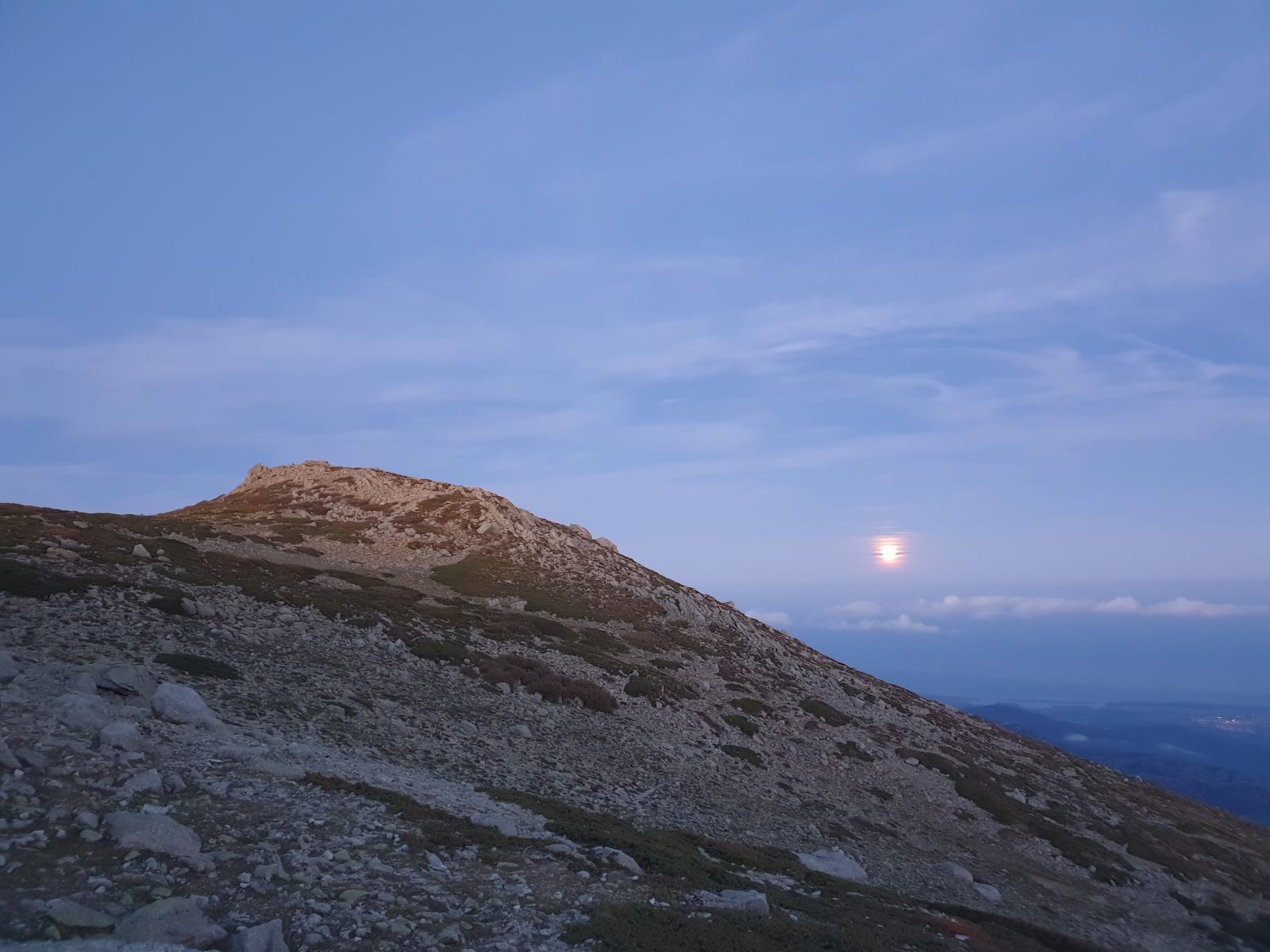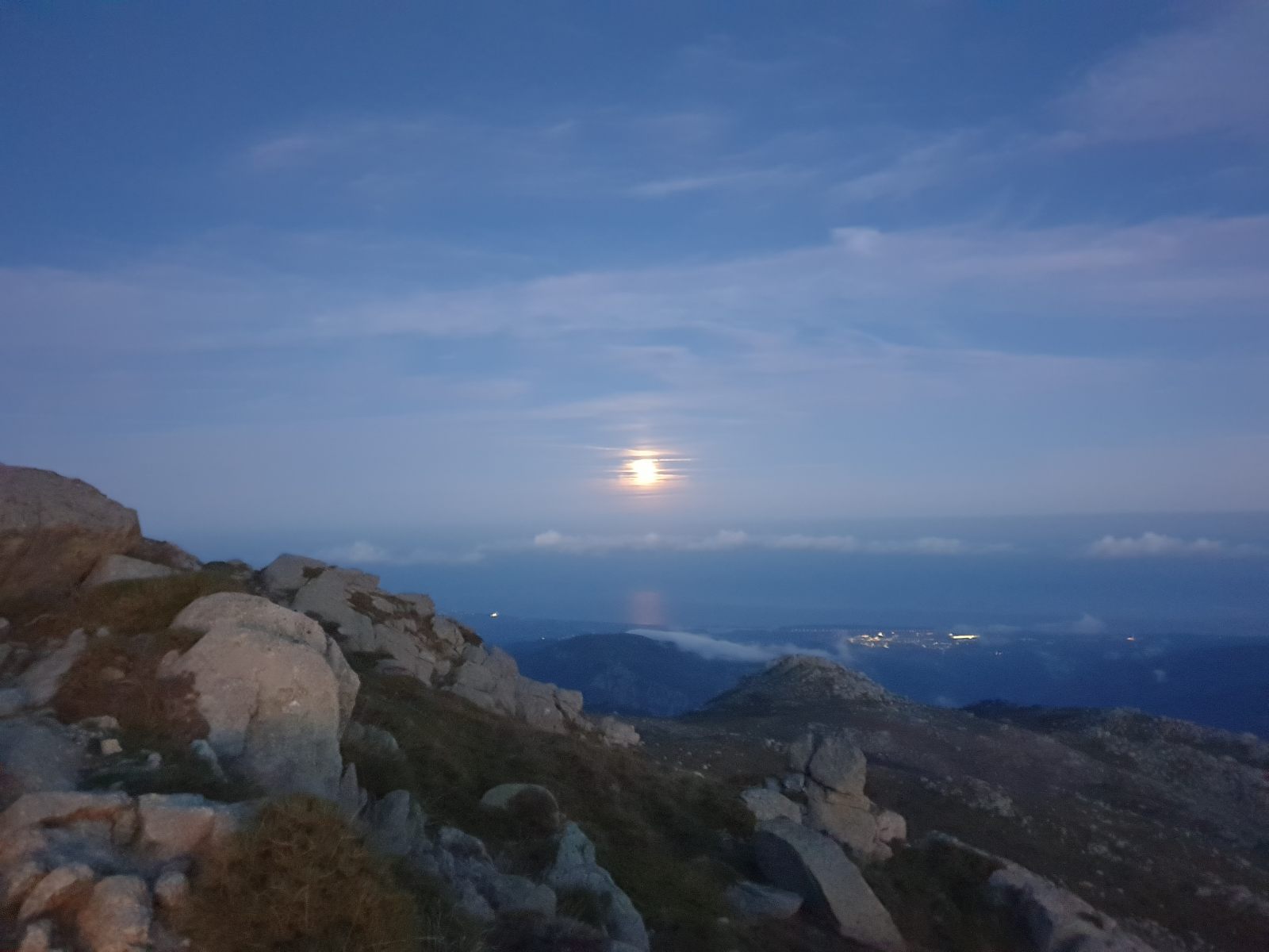 Der zweite Teil dieser Etappe verlangte mir einiges ab. Vom Refuge de Prati war ich gestärkt weitergegangen und erreichte wohlgemut die Bocca di Laparo. Innert weniger als einer Stunde braute sich jedoch ein Sturm zusammen, der riesige Wolkenschiffe über die Krete hinweg trieb. Die Vorstellung, in diesem Wind mehrere Kilometer zu laufen, bereitete mir echte Sorgen. Wie ich dann allerdings den Kamm betrat, hatten sich die Druckunterschiede schon ausgeglichen und das Wetter wieder beruhigt. Weder Wind noch Wölkchen trübten meine Höhenwanderung dem Refuge d’Usciolu zu. Ganz im Gegenteil wurde ich mit einem eindrücklichen Vollmondaufgang verwöhnt. Auch dieser Tag endete mit Fondue und in netter Gesellschaft, und endlich musste ich des Nachts nicht mehr frieren.