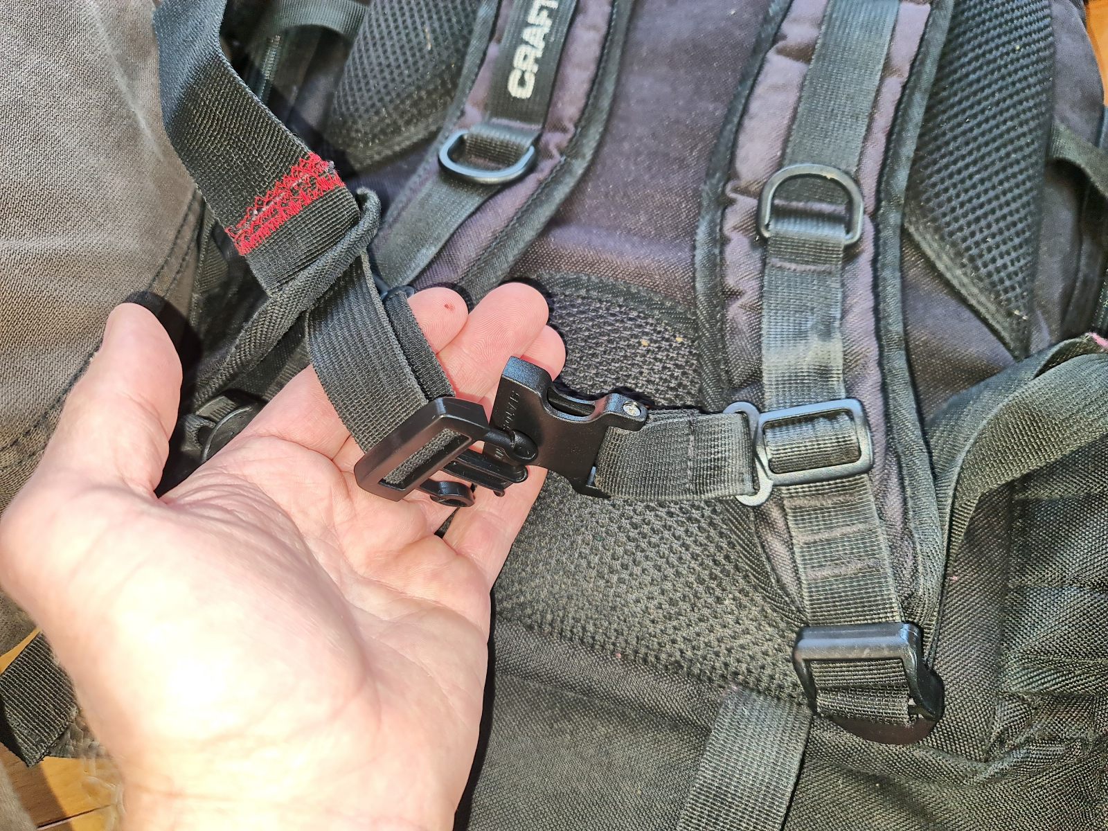 Plastikschnallen finden sich überall an Rucksäcken, und die einstmals klobigen Dinger wurden über die Jahre zunehmend filigraner. Allerdings brechen die Teile irgendwann, und dann ist Bastelei angesagt. Ersatz zu finden erweist sich — abgesehen beim Hersteller — als fast unmöglich, denn das eherne Gesetz der Schnallen- und Elektronikproduzenten heisst: “Variiere das Design jedes neuen Modells um mindestens so viel, dass keines der älteren Bauteile passt!”