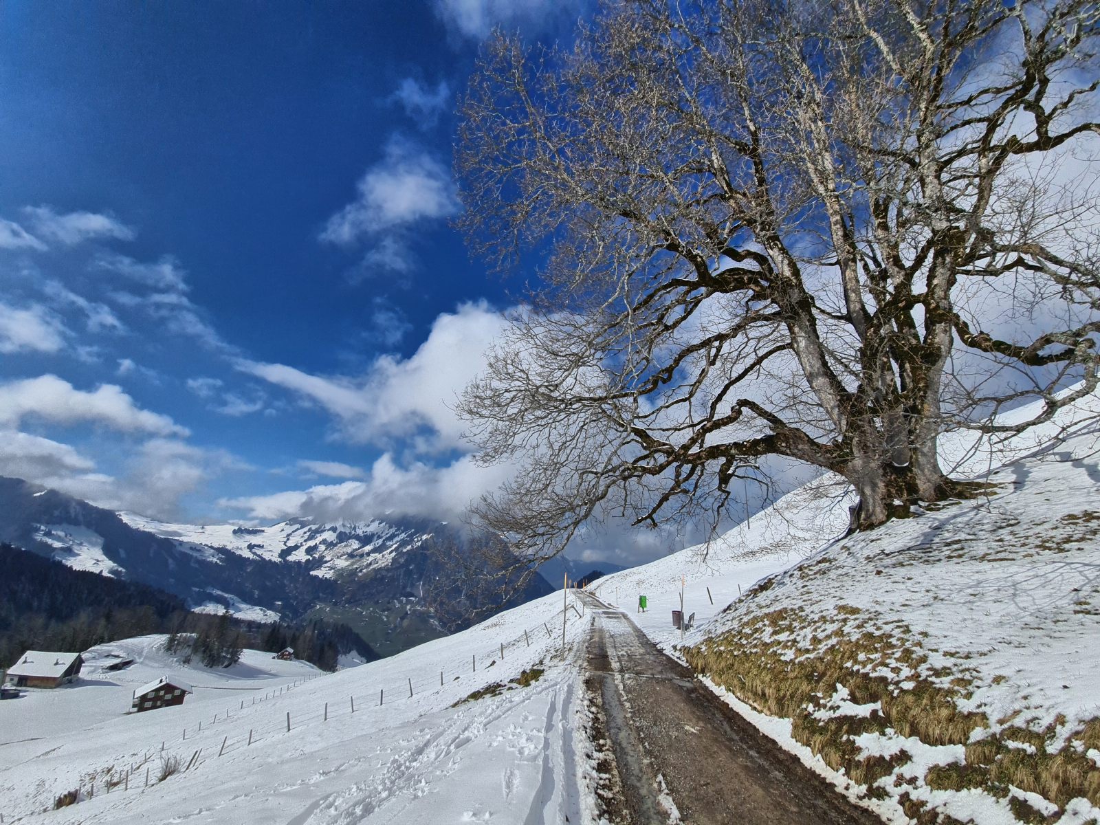 Auf der Bahn waren die üblichen verdächtigen; umzingelt von einem Rudel Nordländer fühlte ich mich schon etwas gar kurz. Immerhin war ich schneller als der Rest und konnte den Long-Jog zum Alpboden mühelos für mich entscheiden. Das Bähnli war schon in Betrieb, wenn auch Kurt oben darüber klagte, dass die Schneefräse am frühen Morgen den Dienst aufgegeben habe. Ausgerechnet an einem Tag wie diesem!
