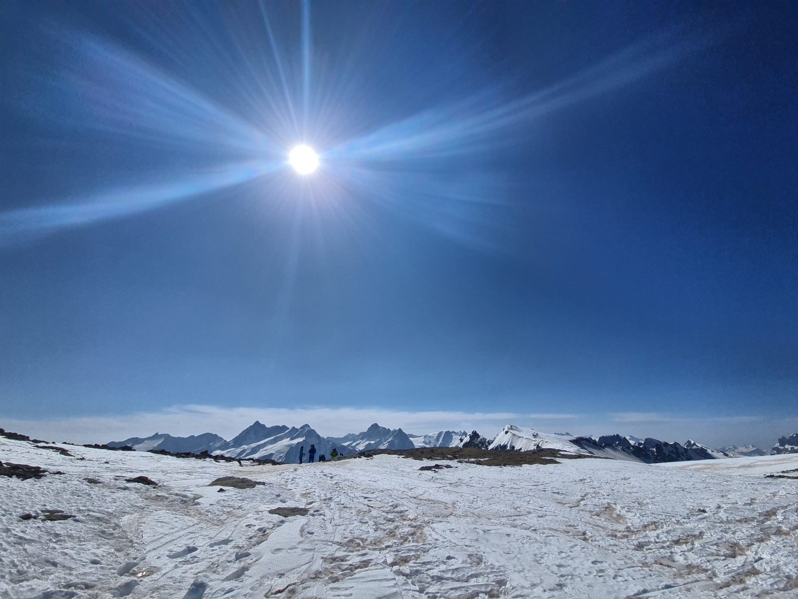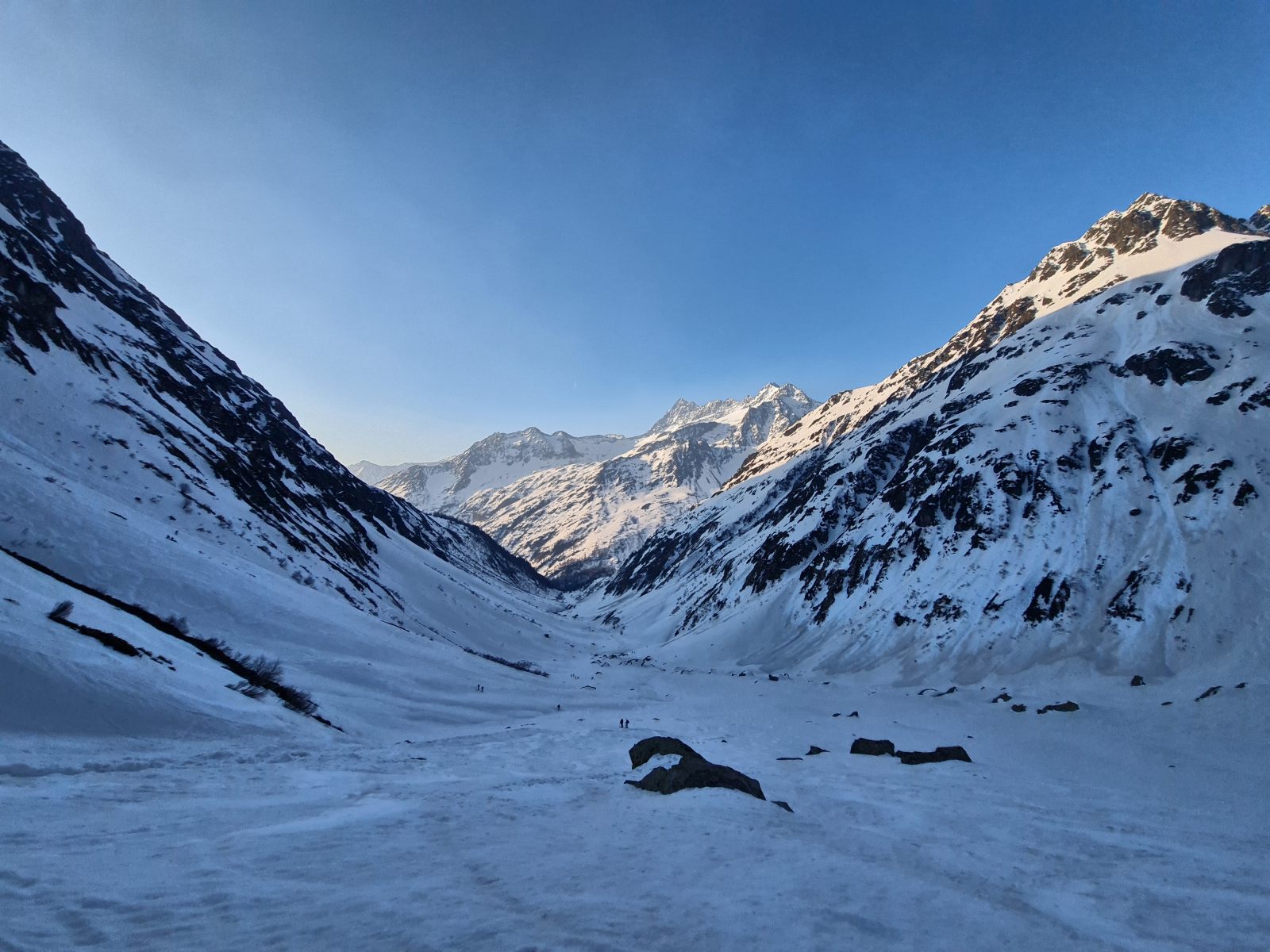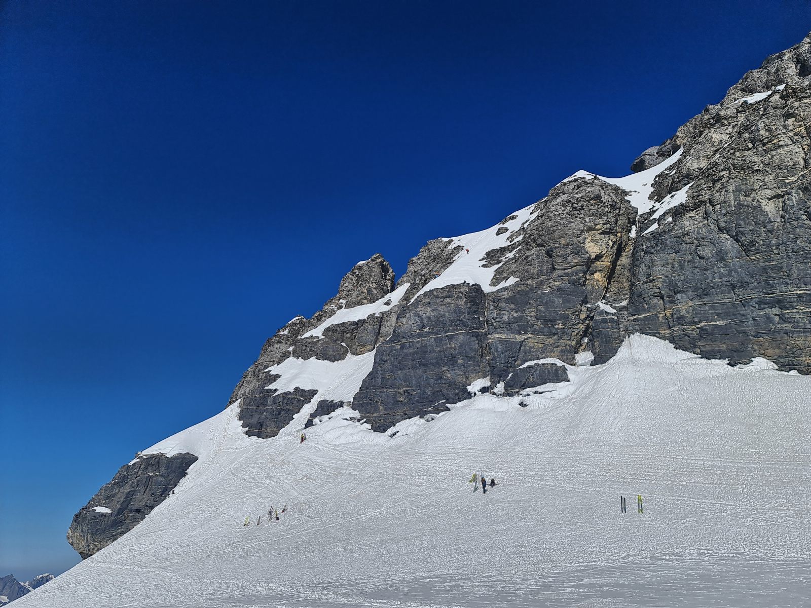 Aufstieg von Goretzmettlen (1566) durchs Chlital und via Rotgand, Juzfad und Rossfirn unter Chli Spannort und Wintertürmli hinauf zum Chüefadpass (2896). Weil dort oben der Südwind arg pfiff, sogleich die nordseitige kurze Abfahrt über 100 Hm unter die Felle genommen und gegenüber zum Spannortjoch (2902) empor gestiegen.