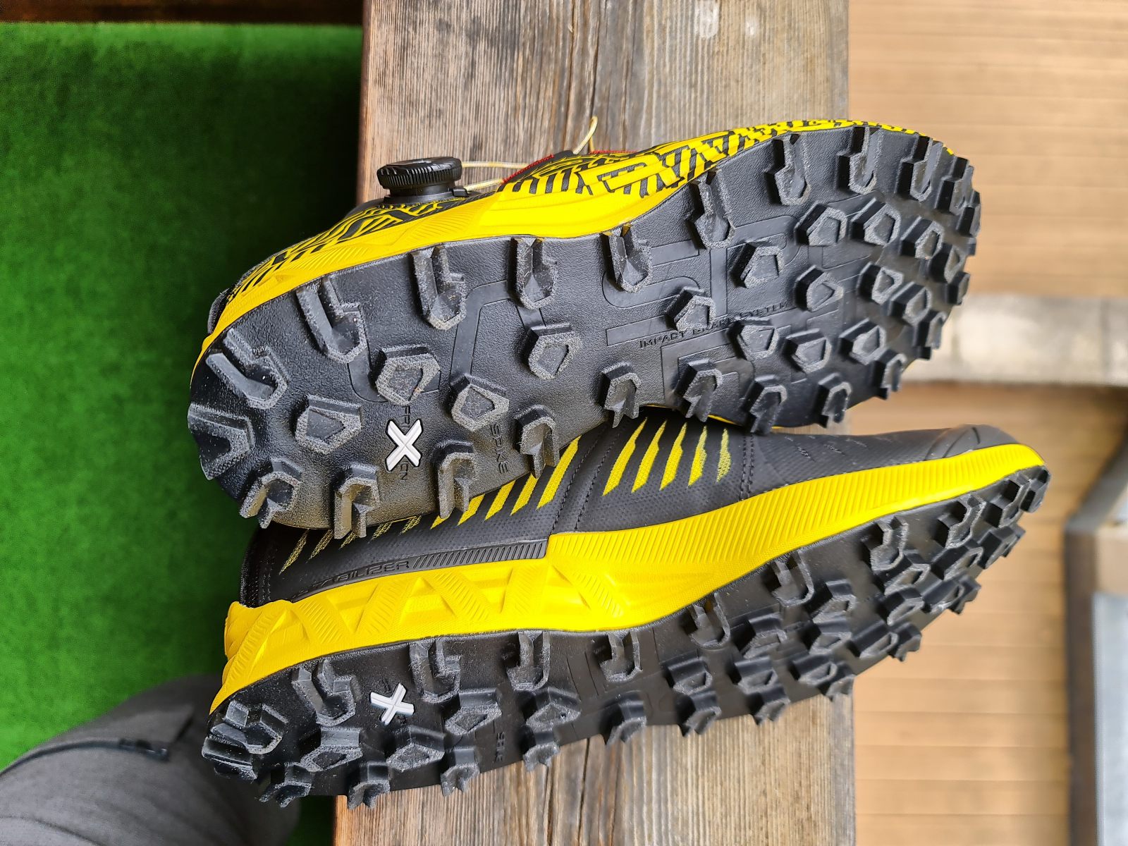 Der Schuh eignet sich gut für feuchtes, rutschiges Terrain, wo der Halt sowieso prekär ist, oder dann als Leichtwanderschuh, wie gesagt. Der Bushido hingegen ist wie für meinen Fuss gemacht, und deshalb bevorzuge ich ihn bei trockenen Verhältnissen und hohem Tempo, wo sich die Schnürung bis weit zum Vorfuss hin straff anziehen lässt. Den Cyklon kann ich nur für Leute mit schmalerem und höheren Fuss empfehlen.