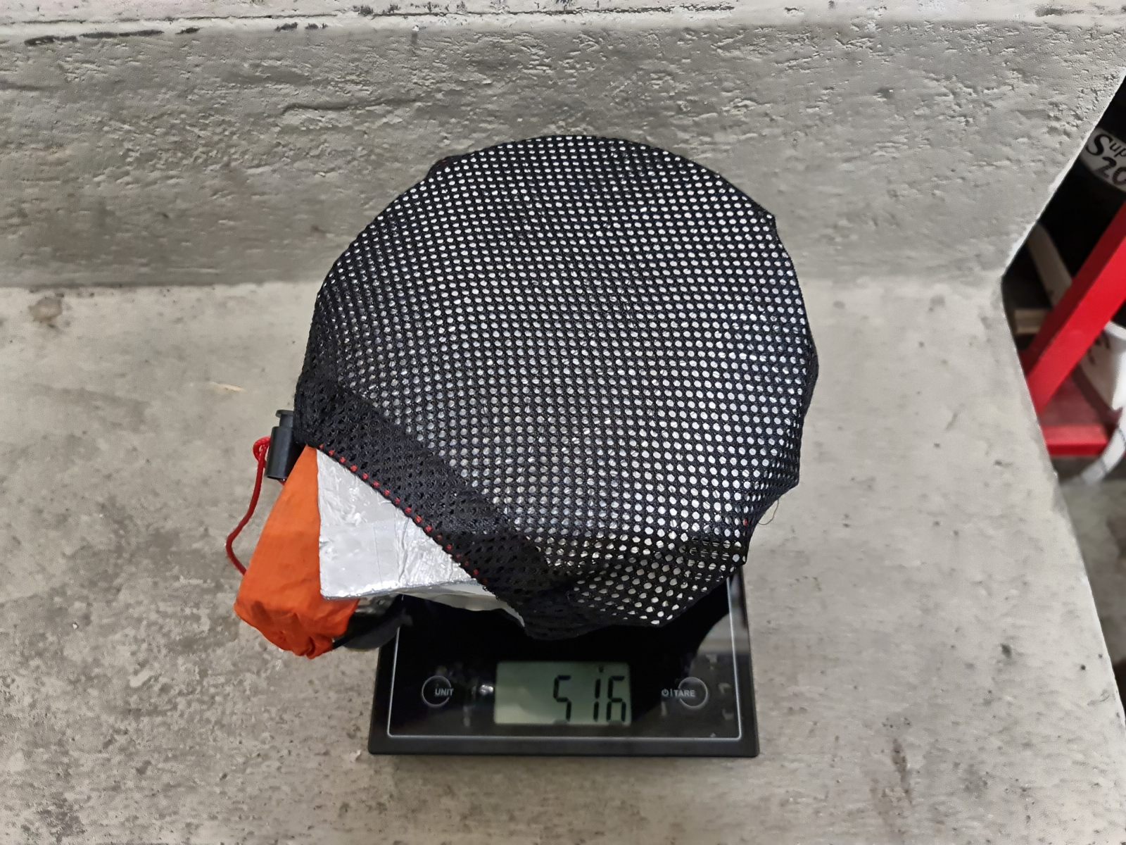 - Windschutz (Jacke + Hose) = 0.4 kg