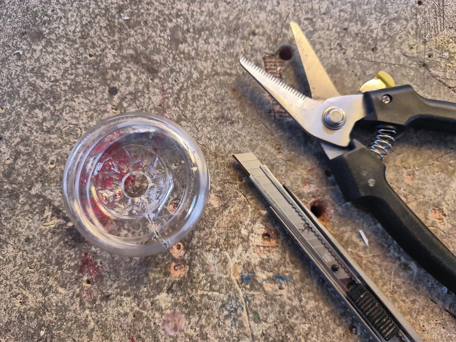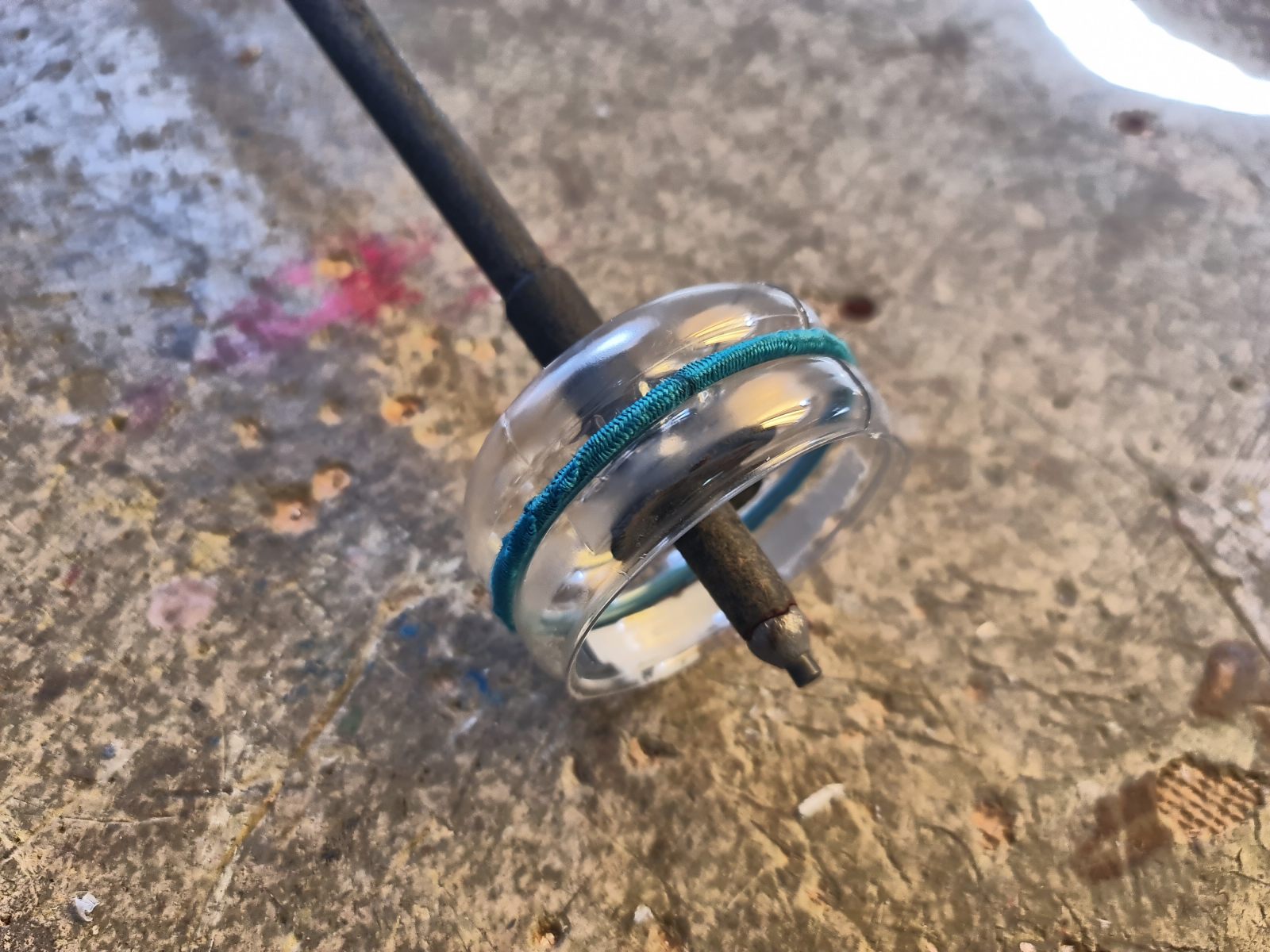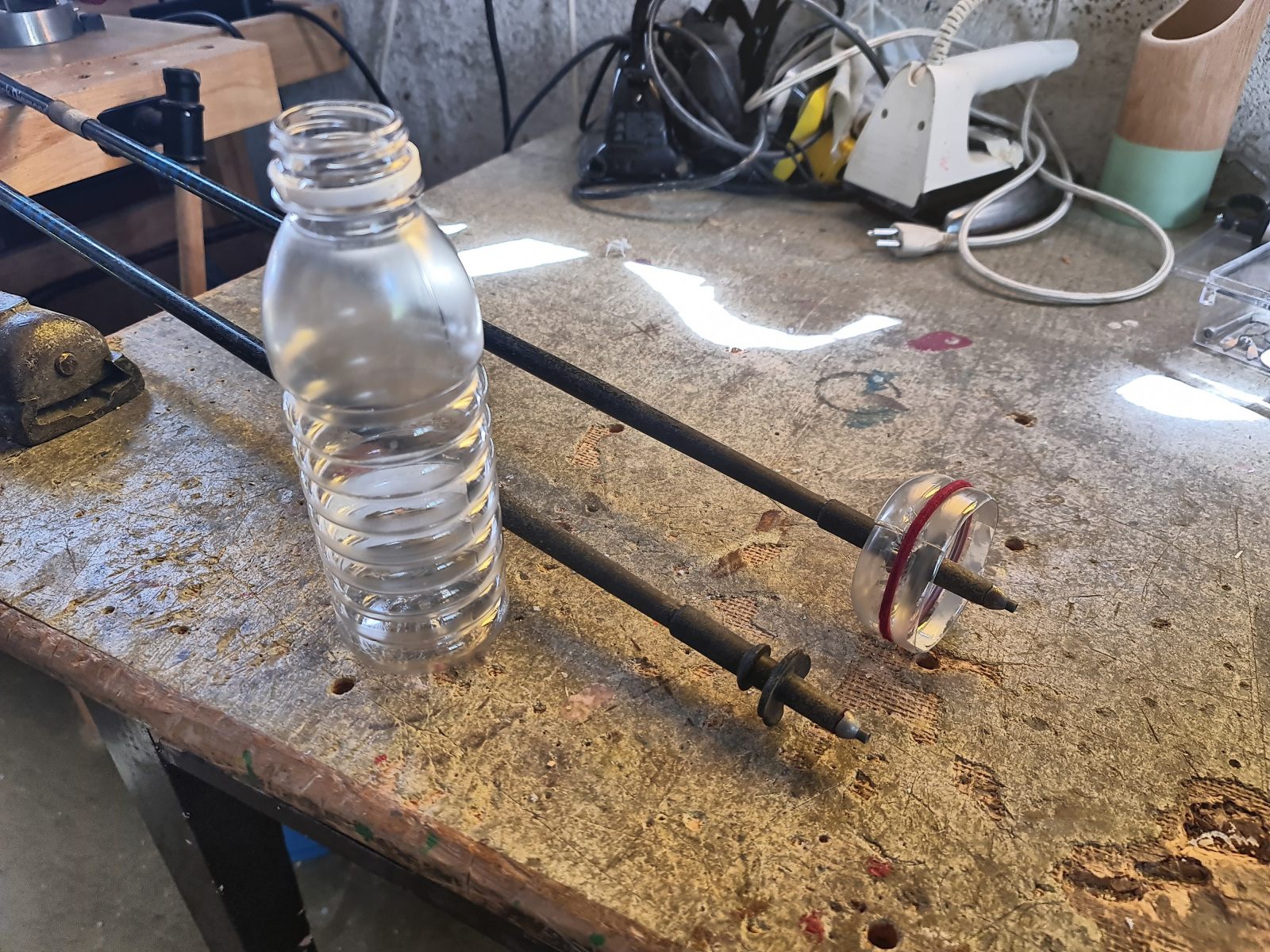 Damit hatte ich mich schon abgefunden, als ich eine ganz andere Idee hatte. Weshalb nicht irgendwie eine PET-Flasche verwenden? Genaue Vorstellung hatte ich keine, und ich konnte mir auch nicht ausmalen, wie das erstens halten sollte, und ob so etwas zweitens ausreichend stabil sein könnte. Eigentlich probierte ich diesen Ansatz mehr der Vollständigkeit halber aus, und das dünnwandige Getränkefläschchen lieferte nichts Brauchbares. Bemerkenswert jedoch, wie stabil der PET-Flaschenboden im Zentrum war. Mit einer dickwandigen PET-Flasche erfüllte das Resultat alle meine Erwartungen.