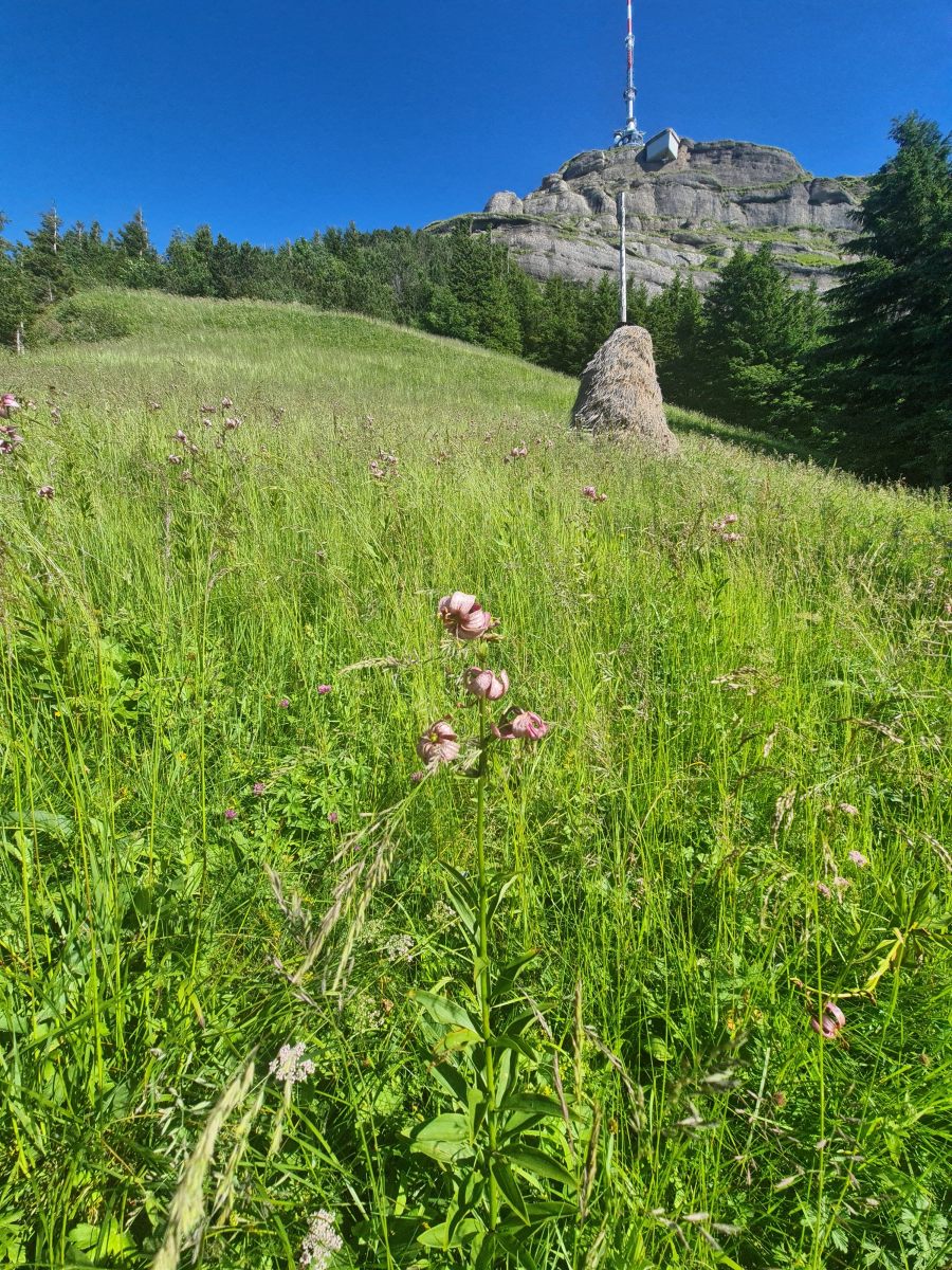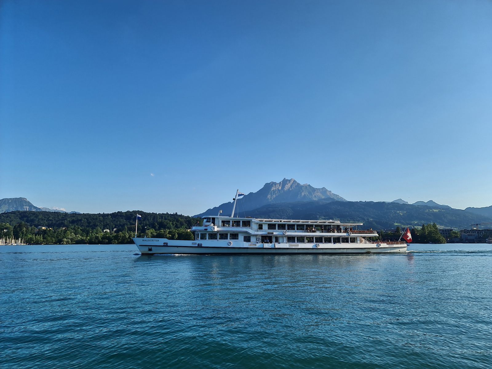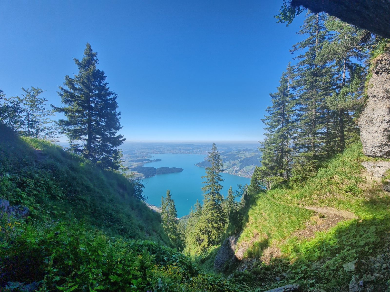 Von Immensee zuerst etwa 2.5 km dem See entlang, und danach ziemlich bolzengerade über 1300 Höhenmeter dem Tobel des Fischchrattenbachs entlang auf den höchsten Punkt der Königin der Berge. Vom Tristenboden aus kann man auch über die Bänder nach Rigi Staffel laufen. Und zum Schluss schaukeln einen die SGVS und die SBB wieder heim.