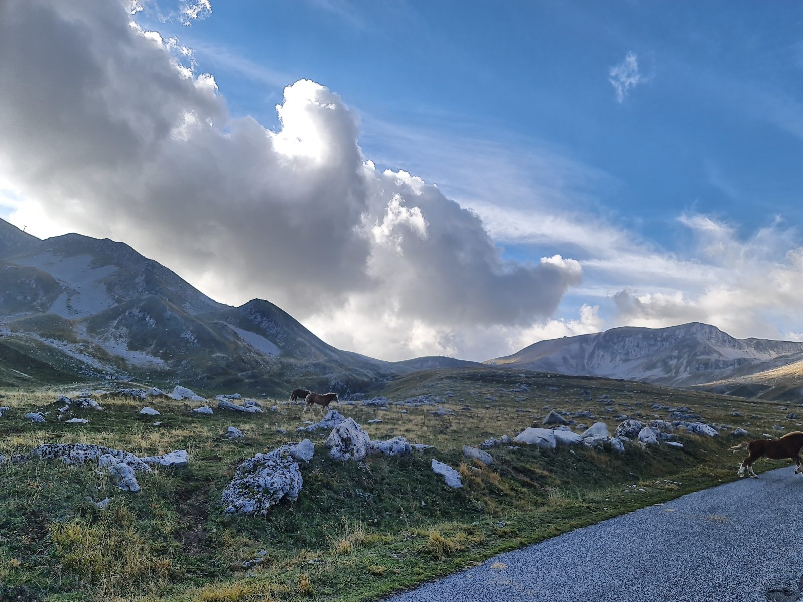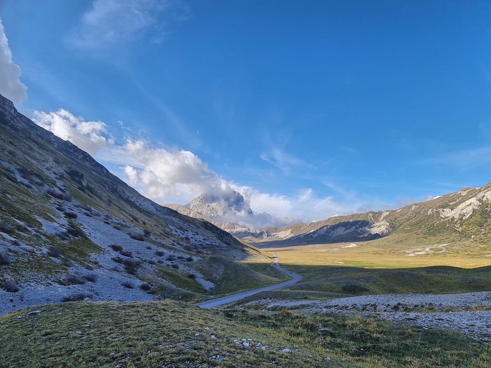 Anreise zum Abenteuer Gran Sasso! Nach langer, langer Vorbereitungszeit geht es schnell voran: Von Rom führt mich die Eisenbahn innert zweier Stunden nach Avezzano, wo ich einen Lieferwagen miete und ins vollends Unbekannt aufbreche. In den Abruzzen sind die Wälder schon herbstlich verfärbt, und die Erinnerung an sommerliche Frische verblasst vollends auf dem Weg von L’Aquila hoch. Die Landschaft wird zusehends unwirklicher, und mit Erreichen der weiten Hochebene auf rund 1600müM wähnt man sich abwechslungsweise in Tibet oder im Wilden Westen. Ich komme ebenso wenig aus dem staunen wie dem photographieren heraus.