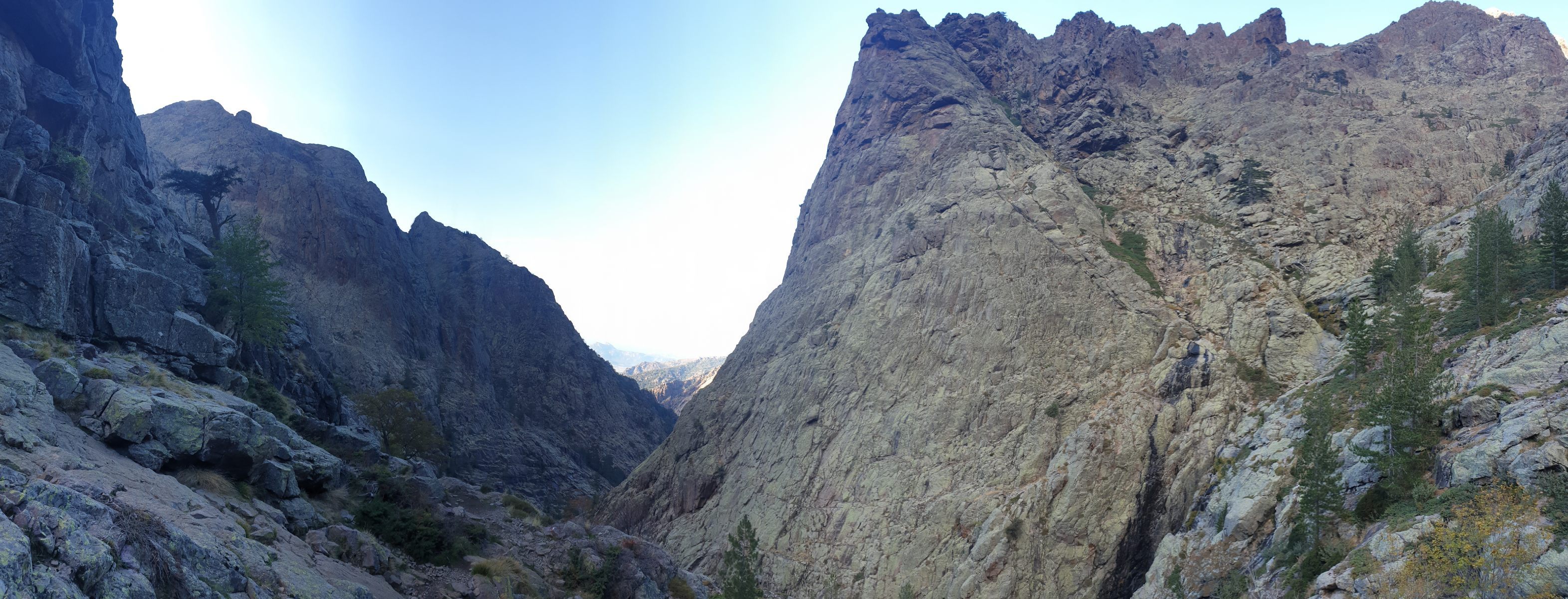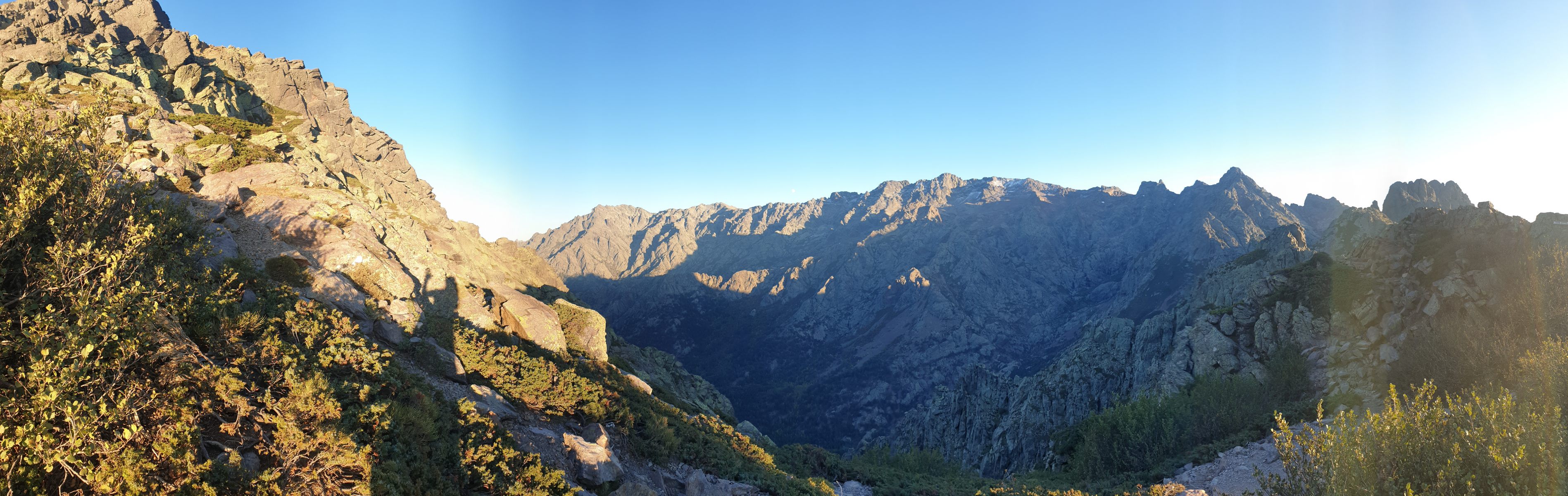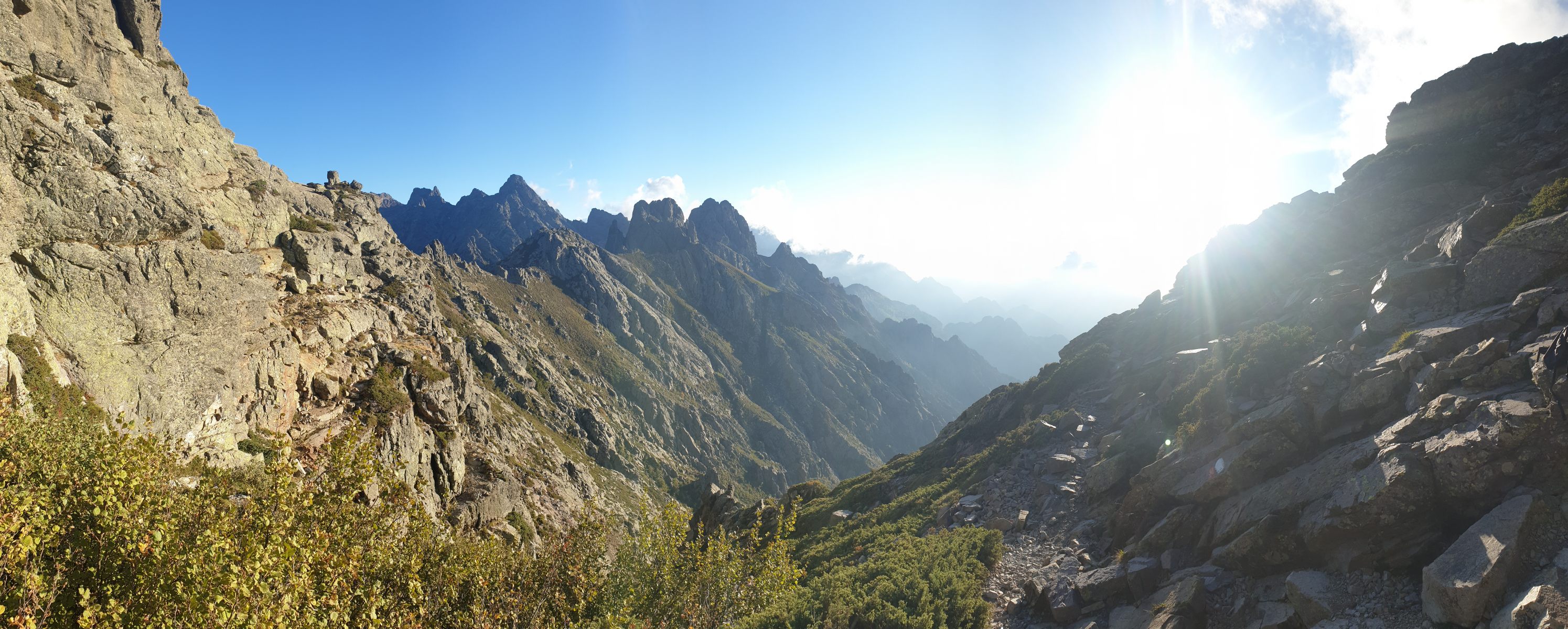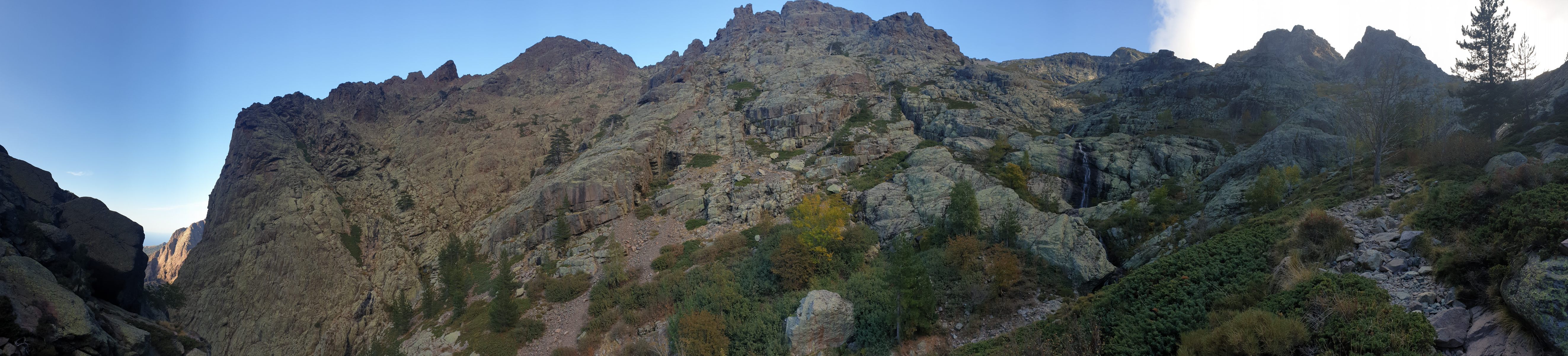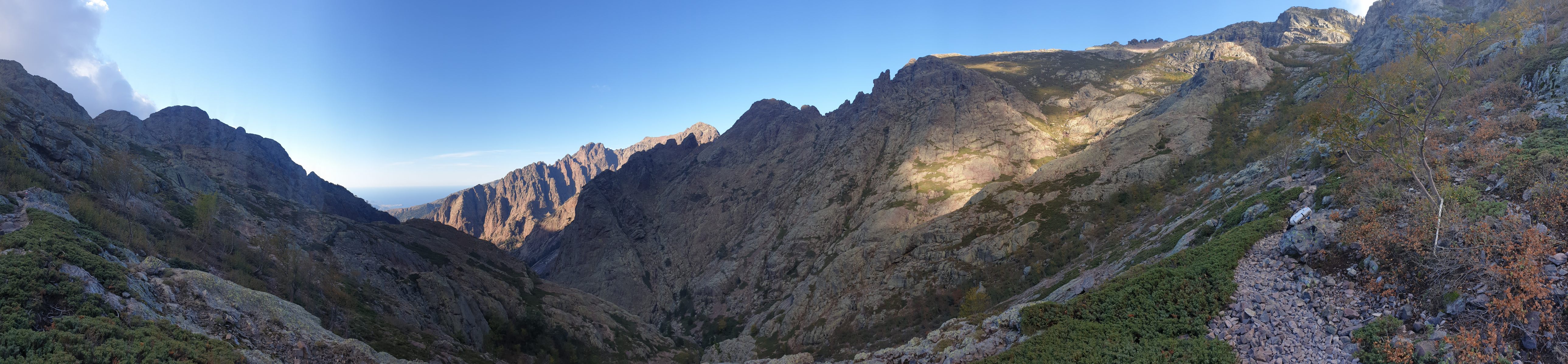 Von der Hütte steigt man zur Hängebrücke Passerelle de la Spasimata ab und folgt dem Bachverlauf zur Bocca di a Muvrella. Der Weg verläuft in der unteren Hälfte mehrheitlich über glatte Platten ohne ausgeprägte Spuren, stellenweise auch recht steil. Bei Nässe vermutlich fast nicht passierbar. Auch der obere Teil führt über steileres, felsiges Terrain.