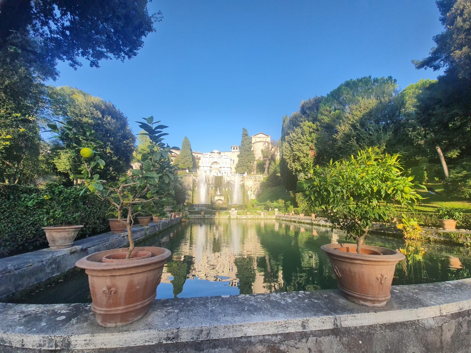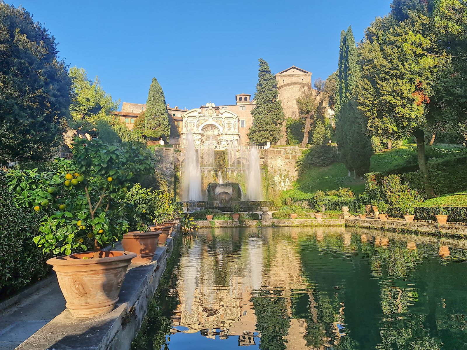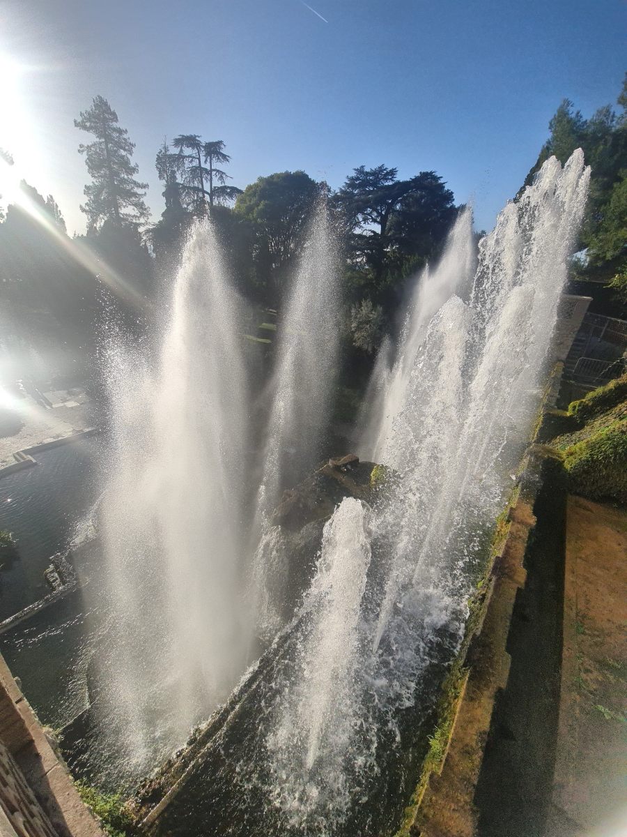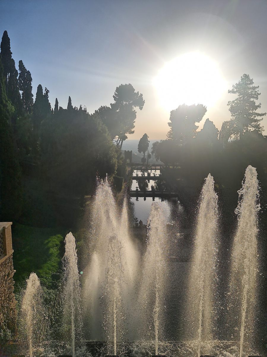 Reise zurück in die Zivilisation aus dem geheimnisvollen Gran Sasso Massiv, die sich als veritable Grand Tour entpuppen soll! Schon bei der Anreise war mir der Name Tivoli ins Auge gestochen, als der Zug dort gehalten hatte. Das klang nach Vergnügungspark — aber was könnte ein Provinzstädtchen damit zu tun haben? Nach etlichen Wikipedia-Artikeln wusste ich, dass die Renaissancelustspielgärten dieses Orts namensgebend gewesen war für jede sinnlose Vergnügerei wurden. Das wollte ich mir ansehen. Immerhin wird die Villa d’Este als UNESCO-Weltkulturerbe gehandelt.