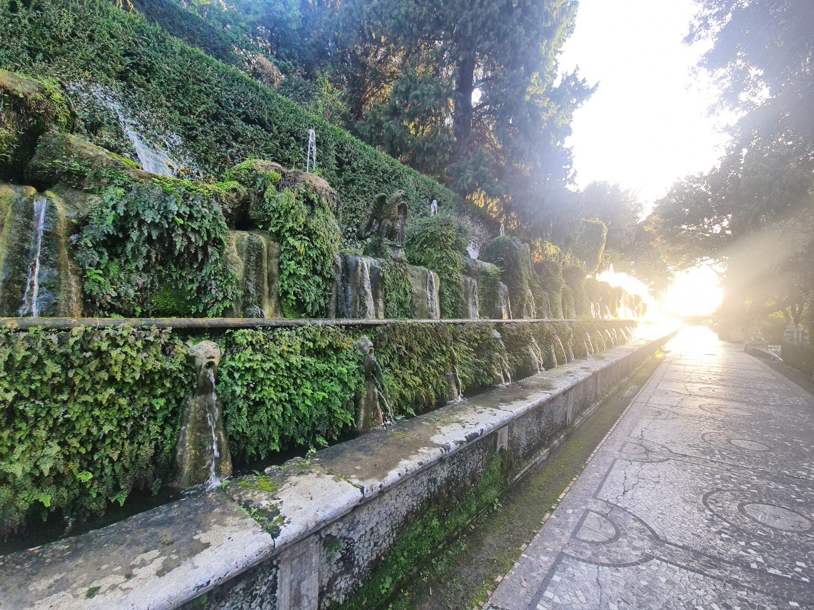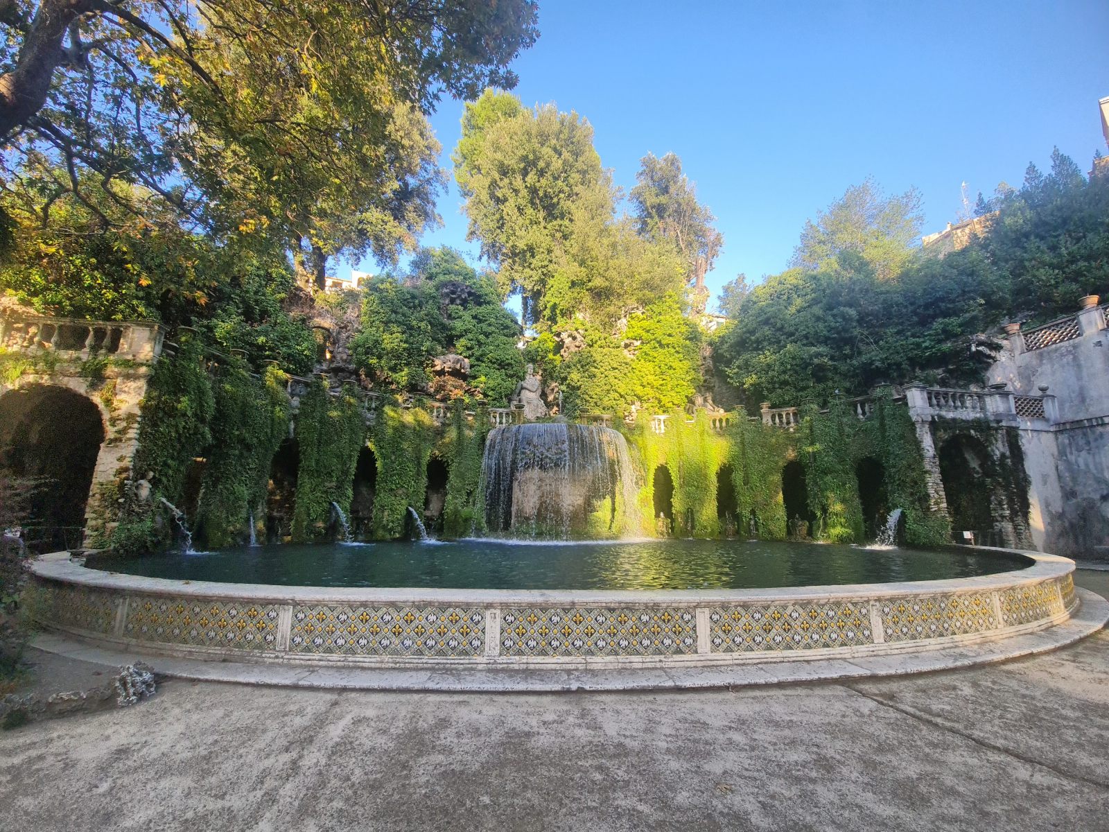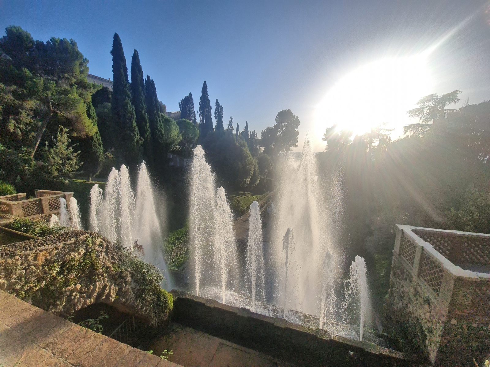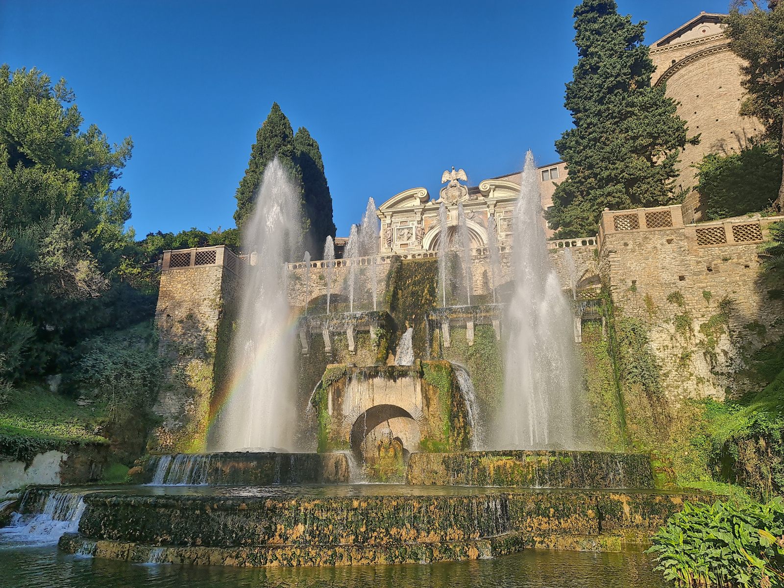 Reise zurück in die Zivilisation aus dem geheimnisvollen Gran Sasso Massiv, die sich als veritable Grand Tour entpuppen soll! Schon bei der Anreise war mir der Name Tivoli ins Auge gestochen, als der Zug dort gehalten hatte. Das klang nach Vergnügungspark — aber was könnte ein Provinzstädtchen damit zu tun haben? Nach etlichen Wikipedia-Artikeln wusste ich, dass die Renaissancelustspielgärten dieses Orts namensgebend gewesen war für jede sinnlose Vergnügerei wurden. Das wollte ich mir ansehen. Immerhin wird die Villa d’Este als UNESCO-Weltkulturerbe gehandelt.