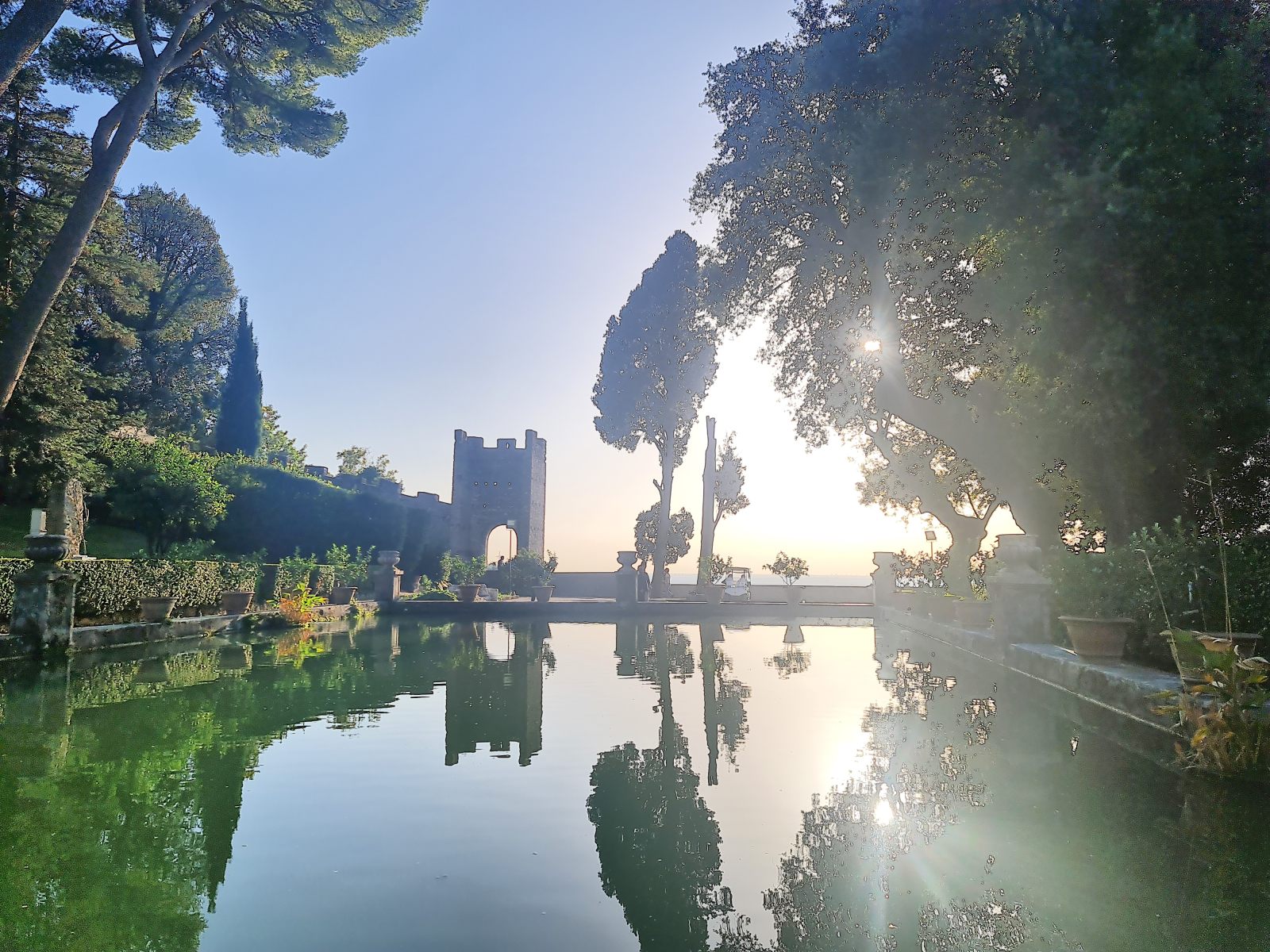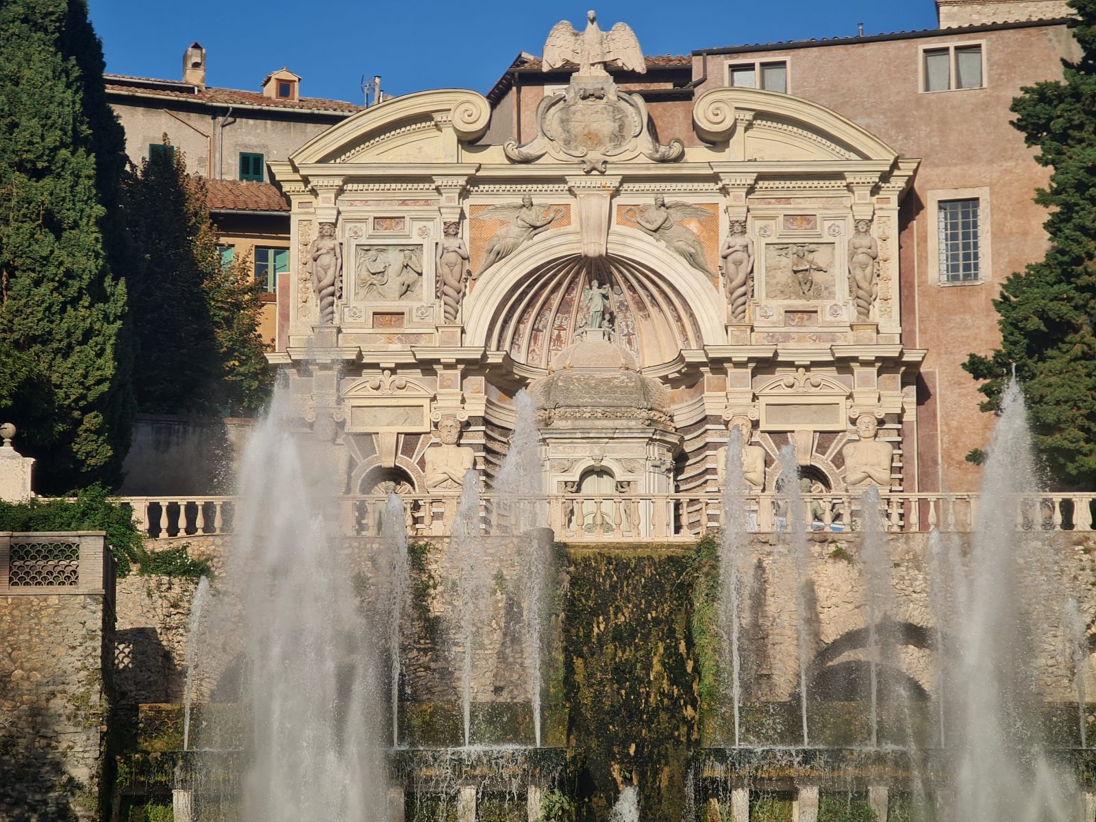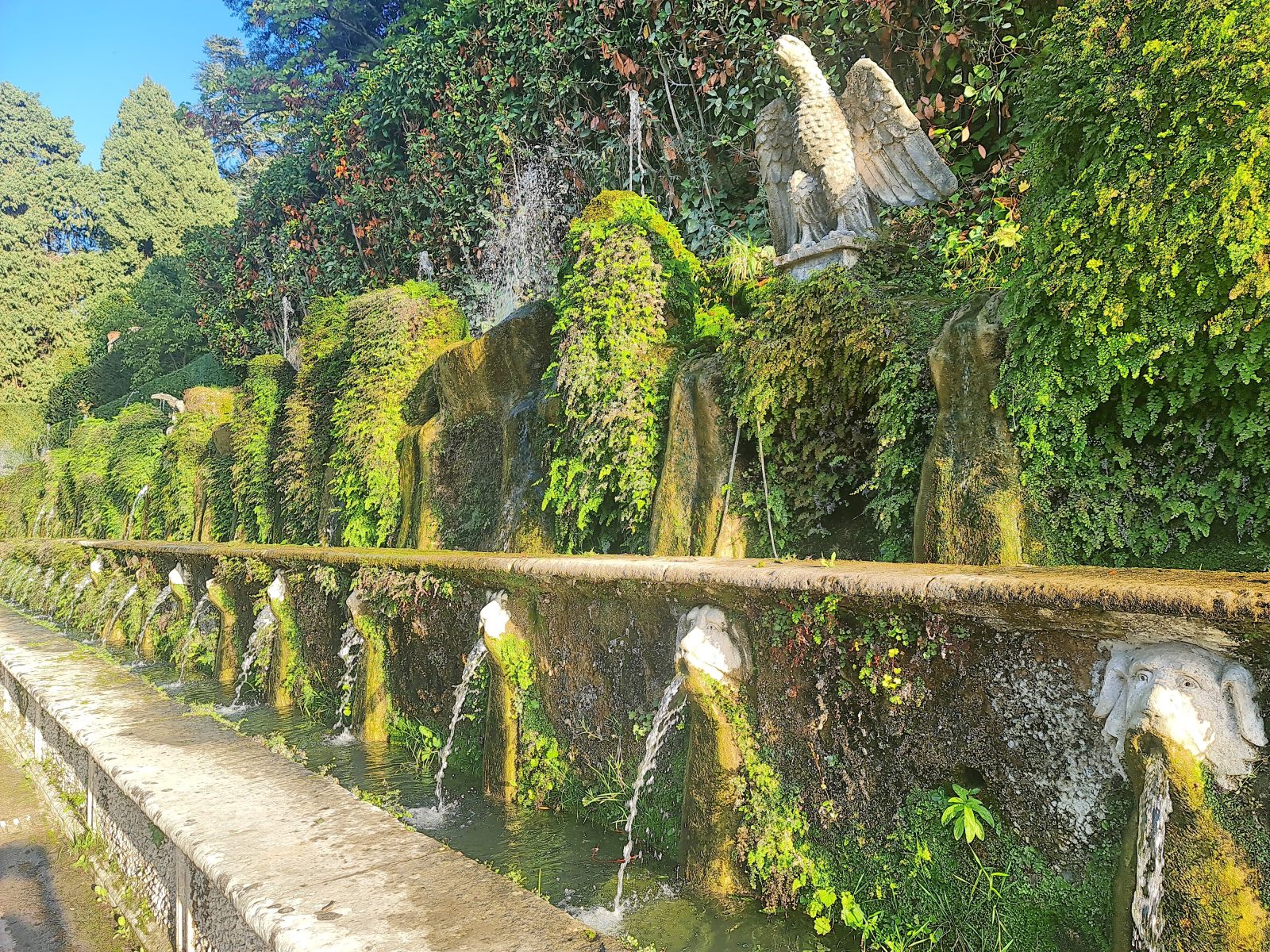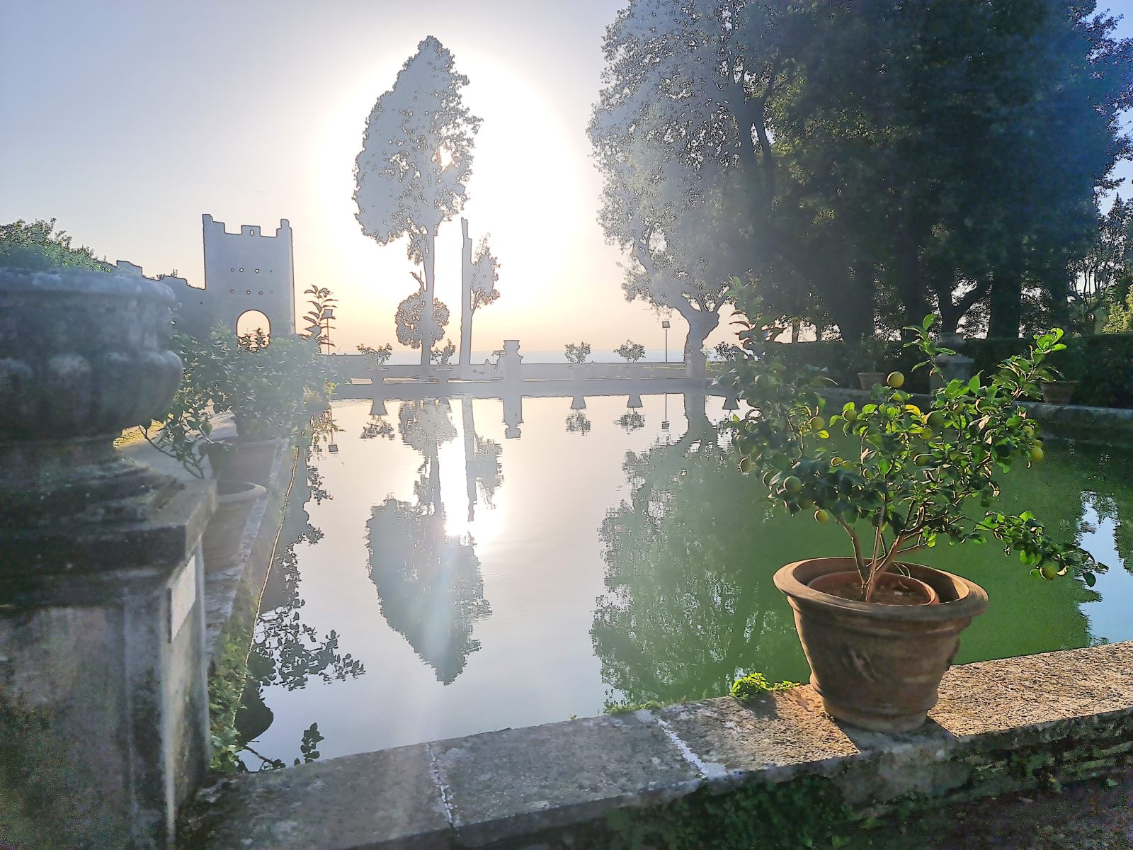 Reise zurück in die Zivilisation aus dem geheimnisvollen Gran Sasso Massiv, die sich als veritable Grand Tour entpuppen soll! Schon bei der Anreise war mir der Name Tivoli ins Auge gestochen, als der Zug dort gehalten hatte. Das klang nach Vergnügungspark — aber was könnte ein Provinzstädtchen damit zu tun haben? Nach etlichen Wikipedia-Artikeln wusste ich, dass die Renaissancelustspielgärten dieses Orts namensgebend gewesen war für jede sinnlose Vergnügerei wurden. Das wollte ich mir ansehen. Immerhin wird die Villa d’Este als UNESCO-Weltkulturerbe gehandelt.