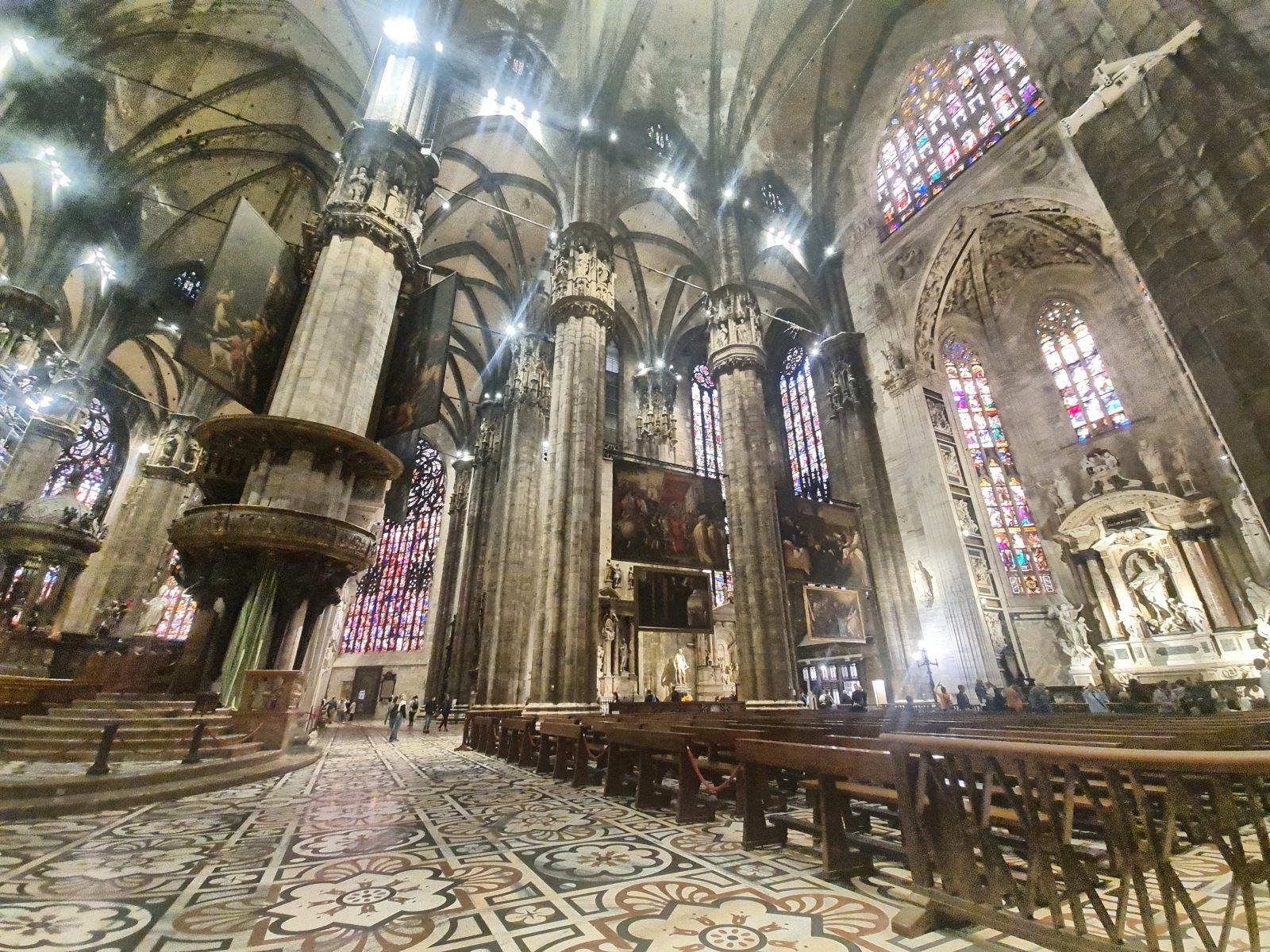 Anderntags wartete noch ein Morgen in Mailand! Mehr oder weniger ausgeruht, aber frisch gestärkt mit einem wunderbaren Caffé marschierte ich durch die Stadt, um endlich einmal dieses Gebirge von einer Kathedrale von innen zu betrachten. Ich war derart hingerissen, dass ich meiner Begeisterung nur noch in Prädikaten Ausdruck verleihen mag.