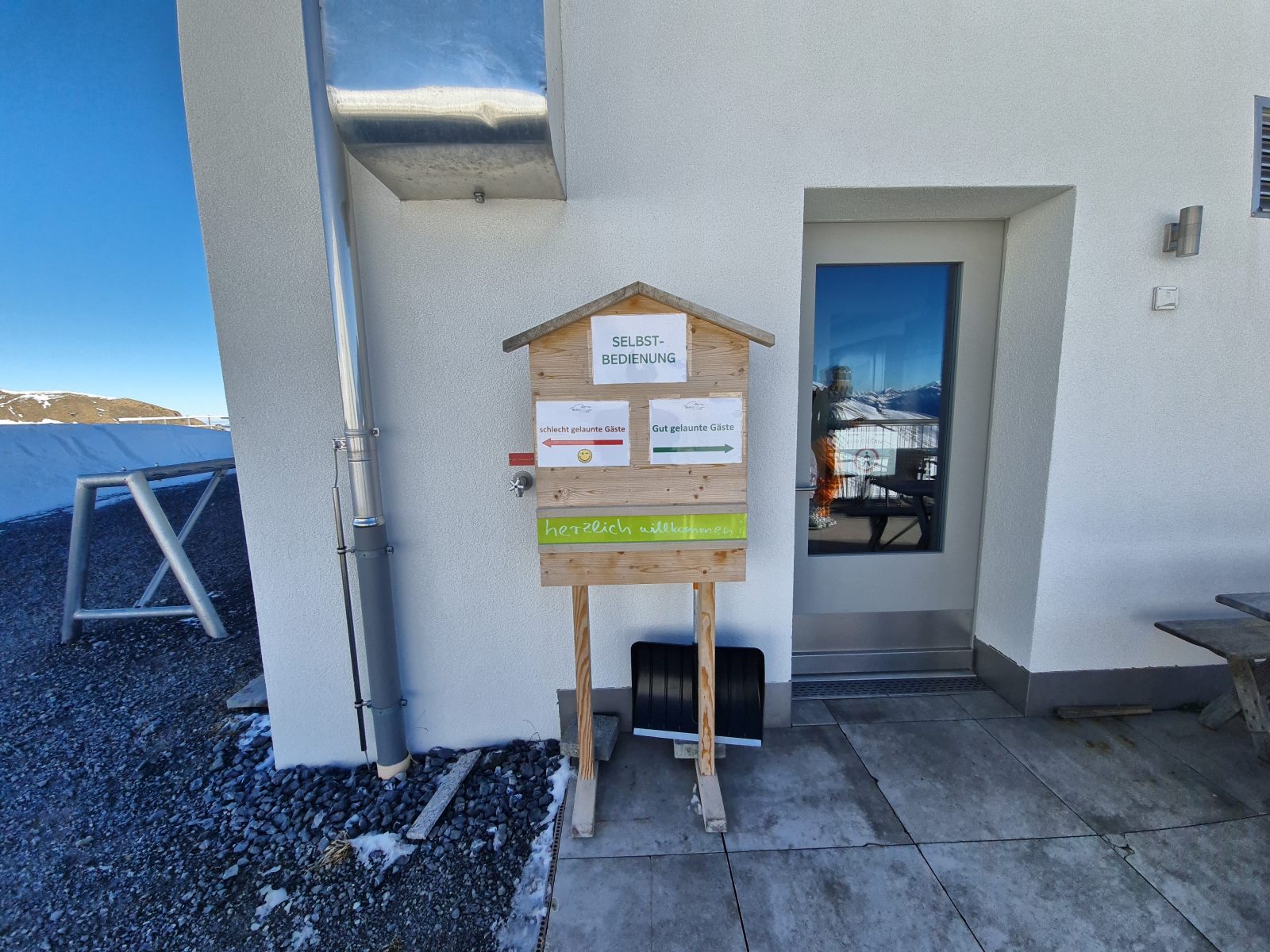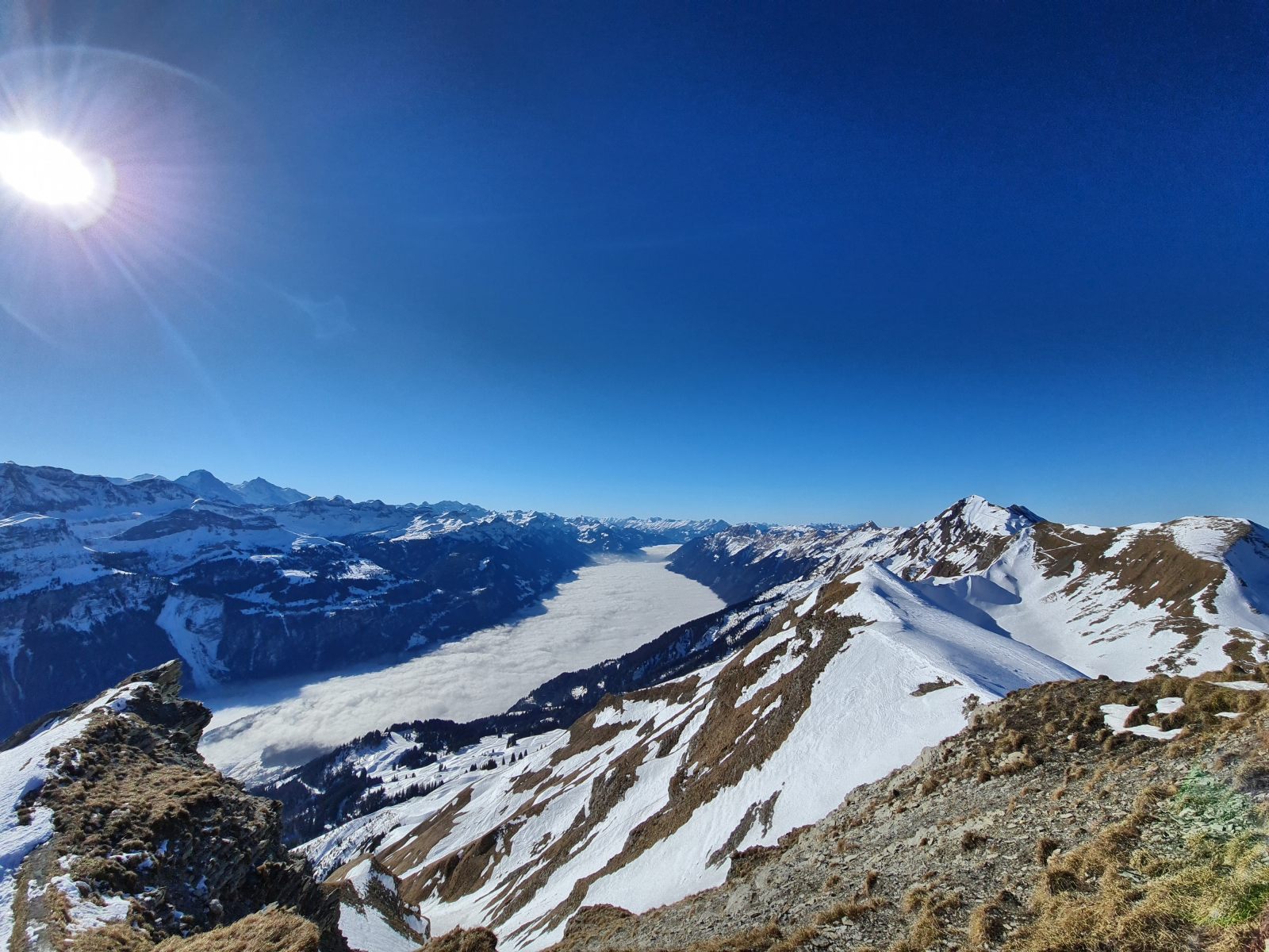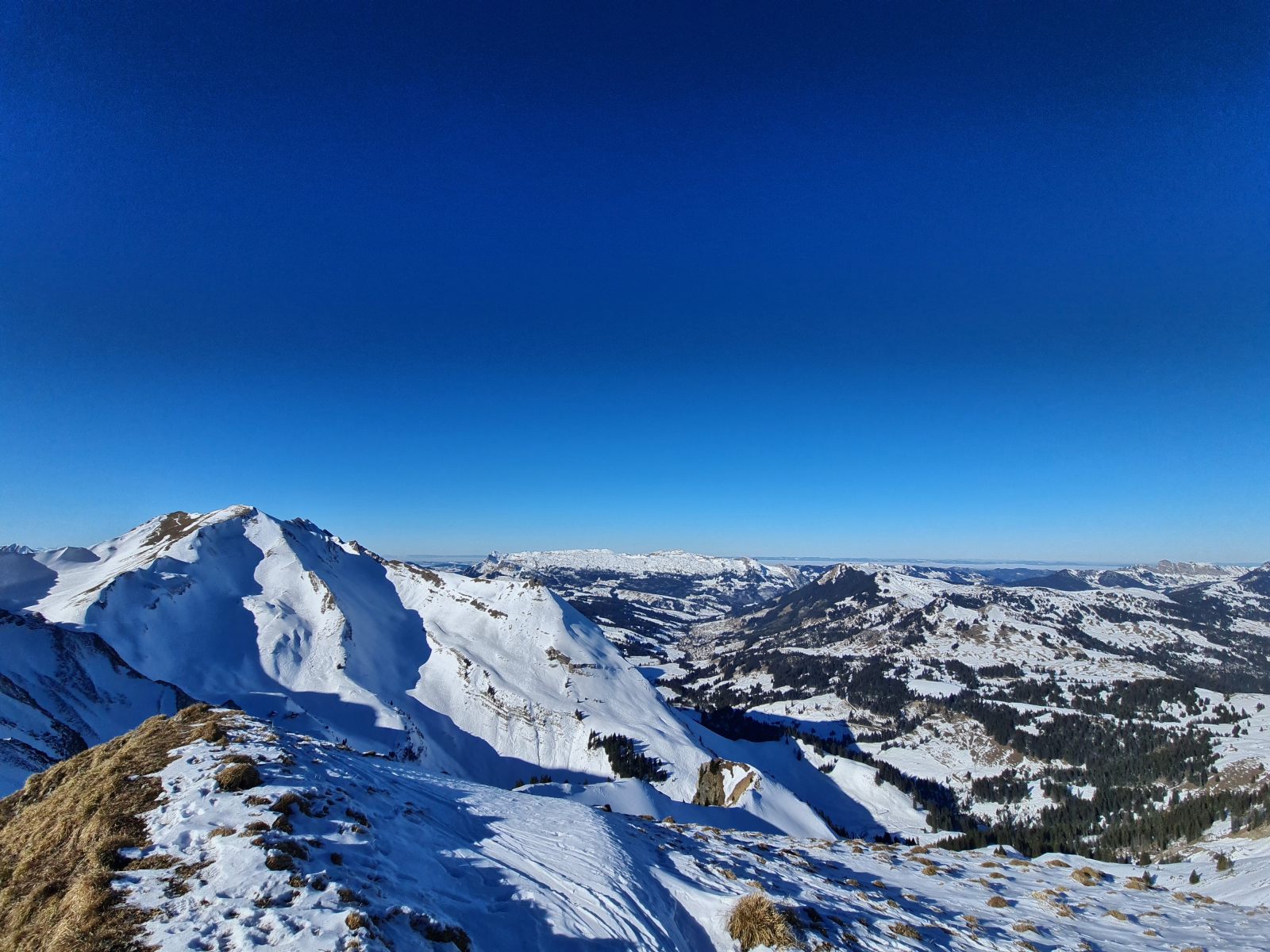 Sonne, blauer Himmel, Pulverschnee, “was wott mè méh”? Anstatt der Abfahrt über die Wandelen blieben wir an der Sonne und fanden Pulverschnee bis auf wenige, kurze Abschnitte, und dort war der Schnee schon von der Sonne aufgeweicht. Ein Prachtstag! Erwähnenswert auch die friedliche Stimmung auf der Sonnenterrasse des Berggasthauses Schönbüel.
