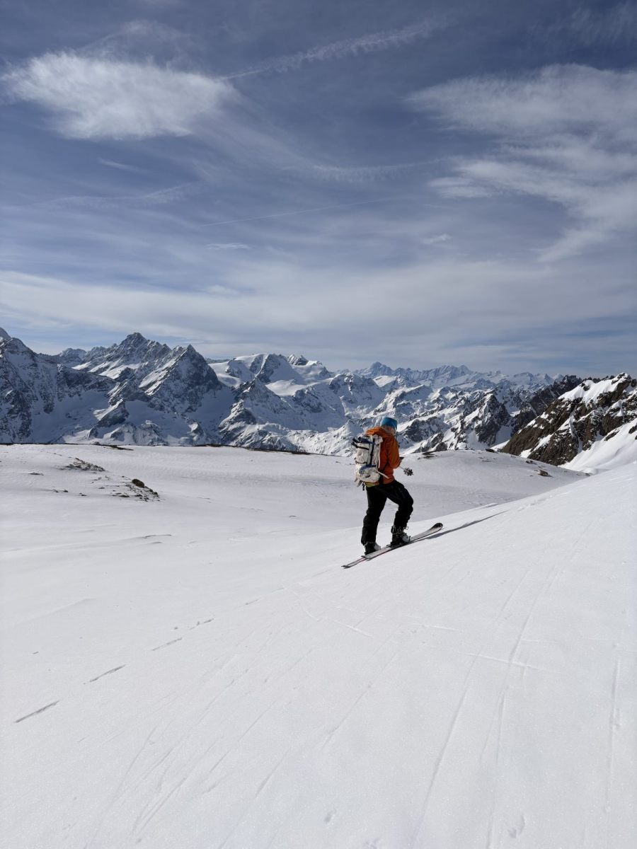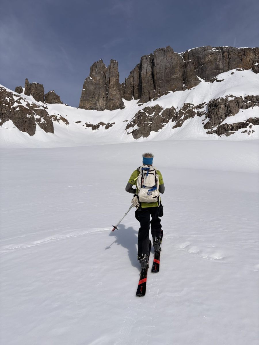 Der Aufstieg über die Rossplanng ist hart aber griffig, und man macht schnell Höhe. Dahinter wird es kurz hart und glatt, sodass ich mit meiner Routenwahl etwas hadere. Sobald wir in die Sonne kommen, verfliegen diese Gedanken und weichen einem zunehmenden Gefühl von Anstrengung. (Ich hätte am Donnerstagabend doch nicht vier Stunden lang einen Kraftausdauersport betreiben sollen!). Abgesehen davon sind die Verhältnisse ebenso prächtig wie die Landschaft. Der steile Ausstieg vom Rossfirn gegens Wintertürmli hoch ist gut gespurt und sehr einfach zu begehen. Die Spur wurde offenbar noch bei Neuschneeverhältnissen angelegt, was ich etwas verwegen finde. Heute aber ist alles easy, und wenig später stehen wir auf dem Bärenhorn drüben.