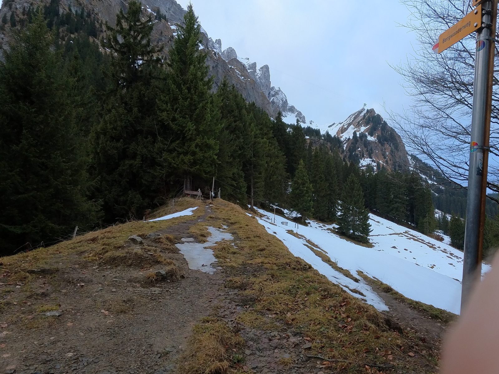 Den Zustieg wähle ich von Hergiswil a.S. aus, wo mich die Eisenbahn schon frühmorgens hinbringt. Am Mittag muss ich von zuhause losfahren können, damit ich am Nachmittag pünktlich bei der Arbeit bin. Dieser Anmarsch erstreckt sich über rund 2.5 km Luftlinie, wohingegen der übliche Weg von Kriens her etwa doppelt so weit ist und sinnvollerweise mit dem Velo zurückgelegt wird. Zudem erwarte ich im ostseitig exponierten Weidegelände weniger Altschnee als im schattigen Chrienser Hohwald.