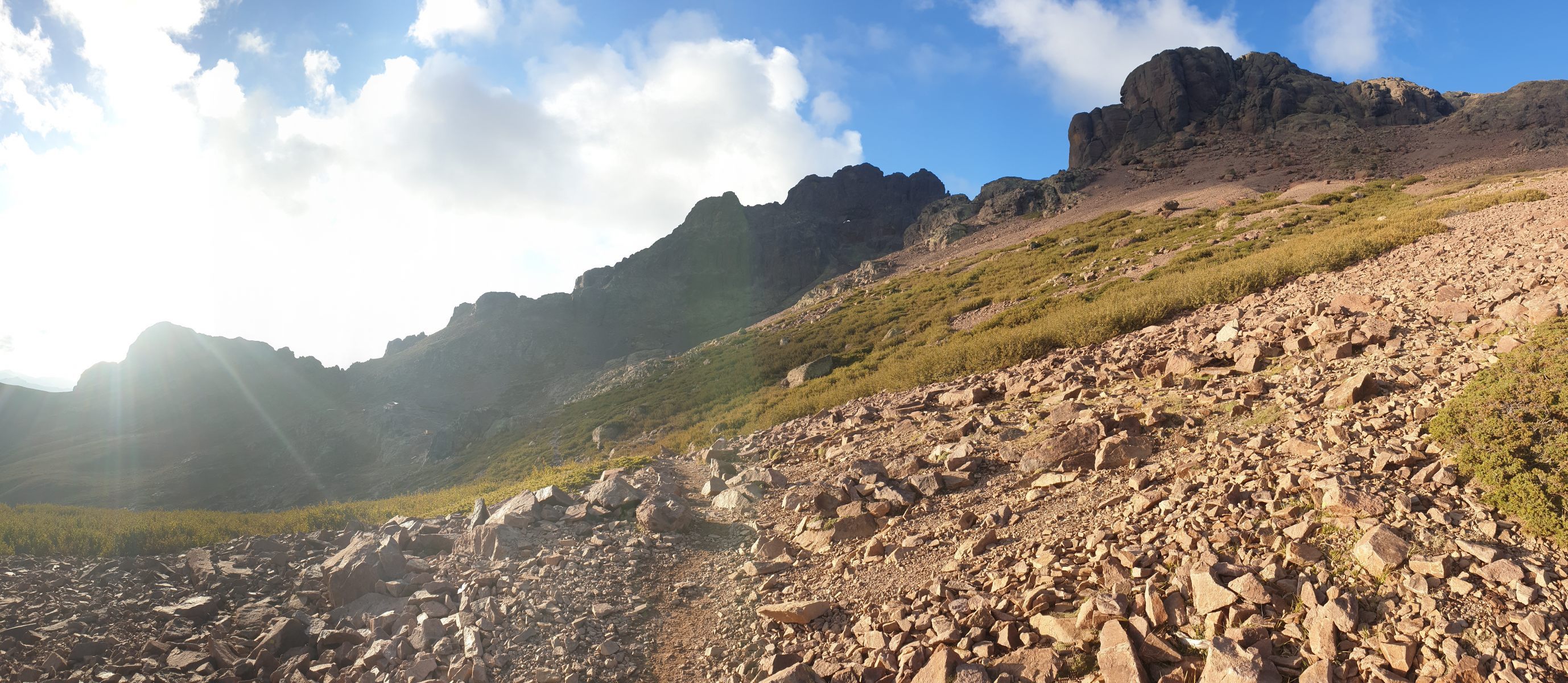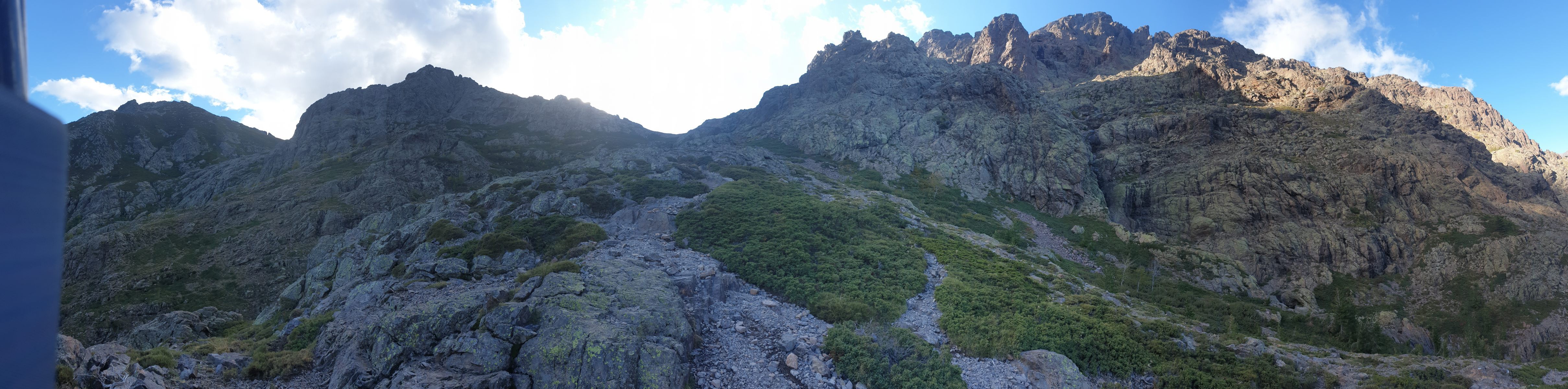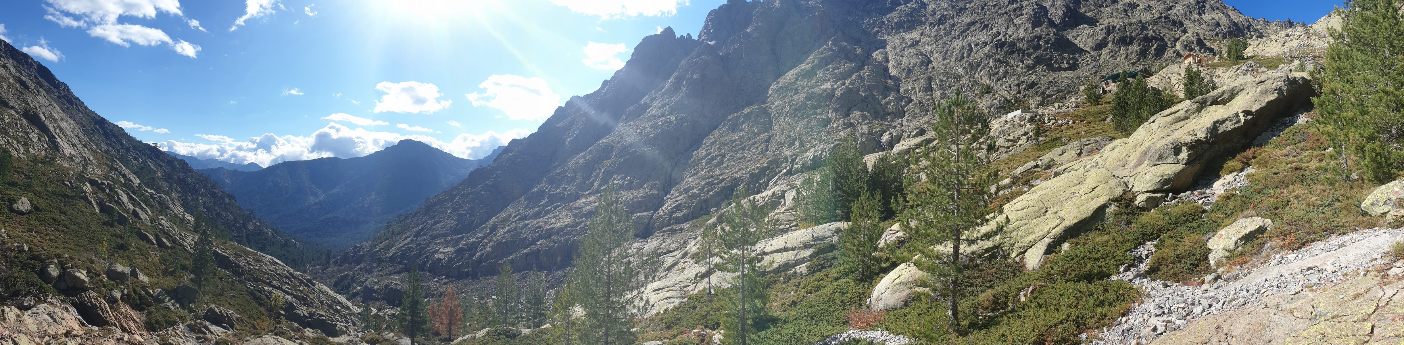 Unter der Hütte folgt man dem Bachverlauf bis zur Bergerie de Ballone (1450). Von dort traversiert der Weg um den Ostrücken der Paglia Orba ins Tal des Ruisseau de Foccialle und dort hoch zur gleichnamigen Bocca. Zur sehr schön gelegene Hütte traversiert man nach knapp hundert Metern Aufstieg.