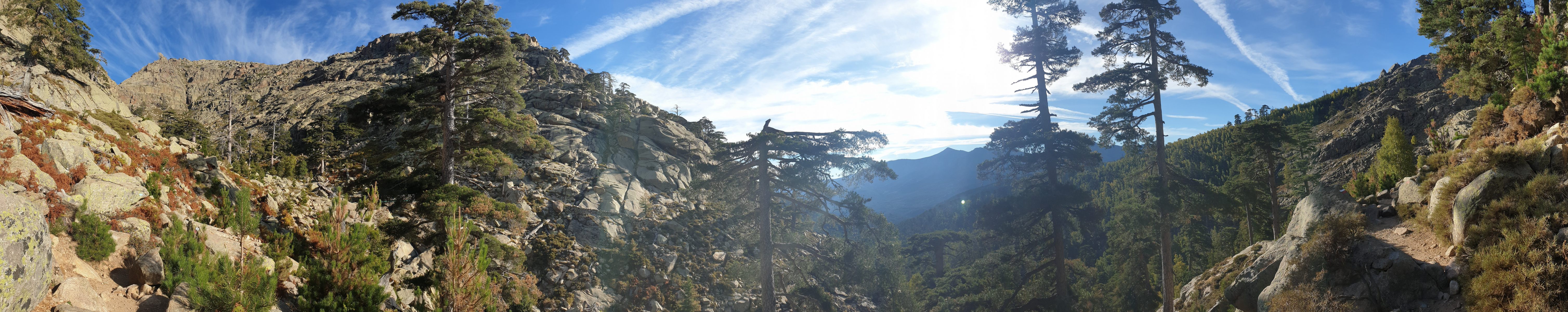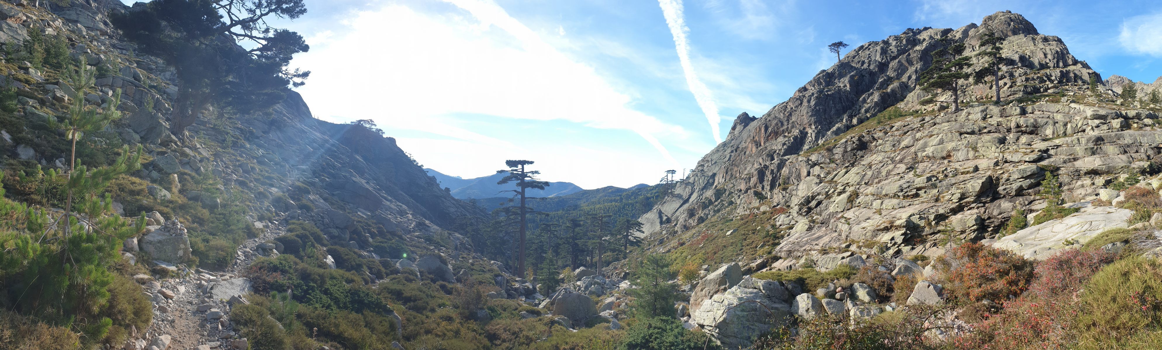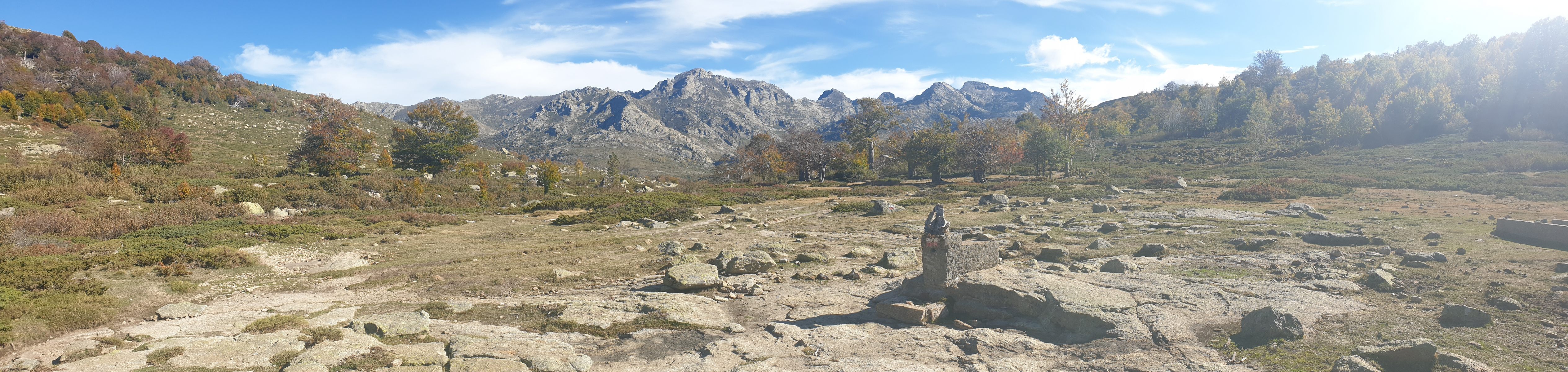 Vom Start weg behält man die Höhe und folgt dem breiten Rücken, bevor man ins Tal des Golo absteigt und dessen Lauf verfolgt. Vermutlich eines der schönsten Flussbäder weit und breit befindet sich dort, wo der Fluss eine Biegung nach Osten macht.