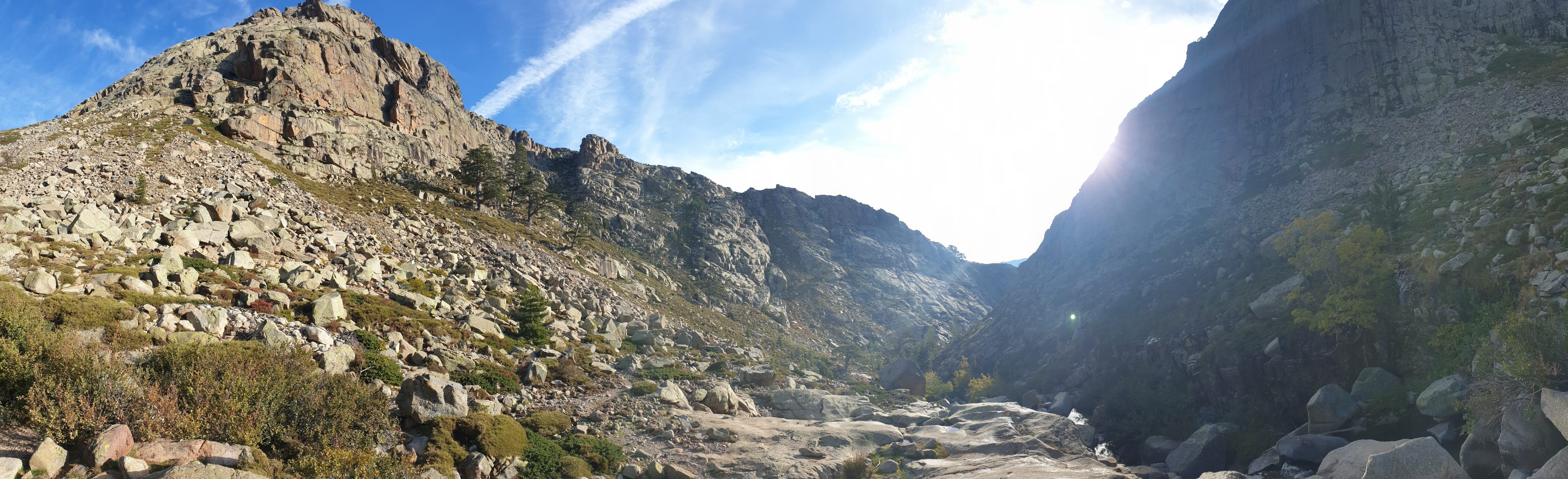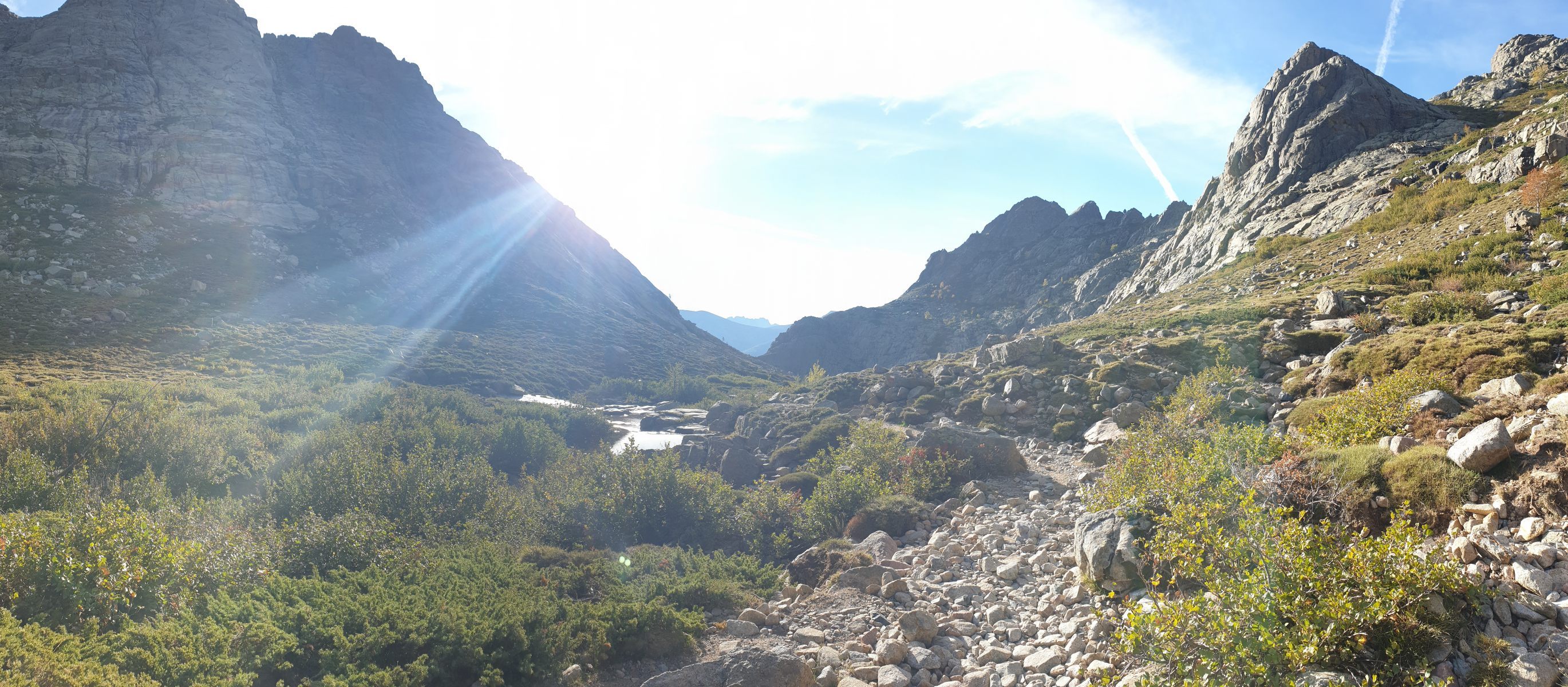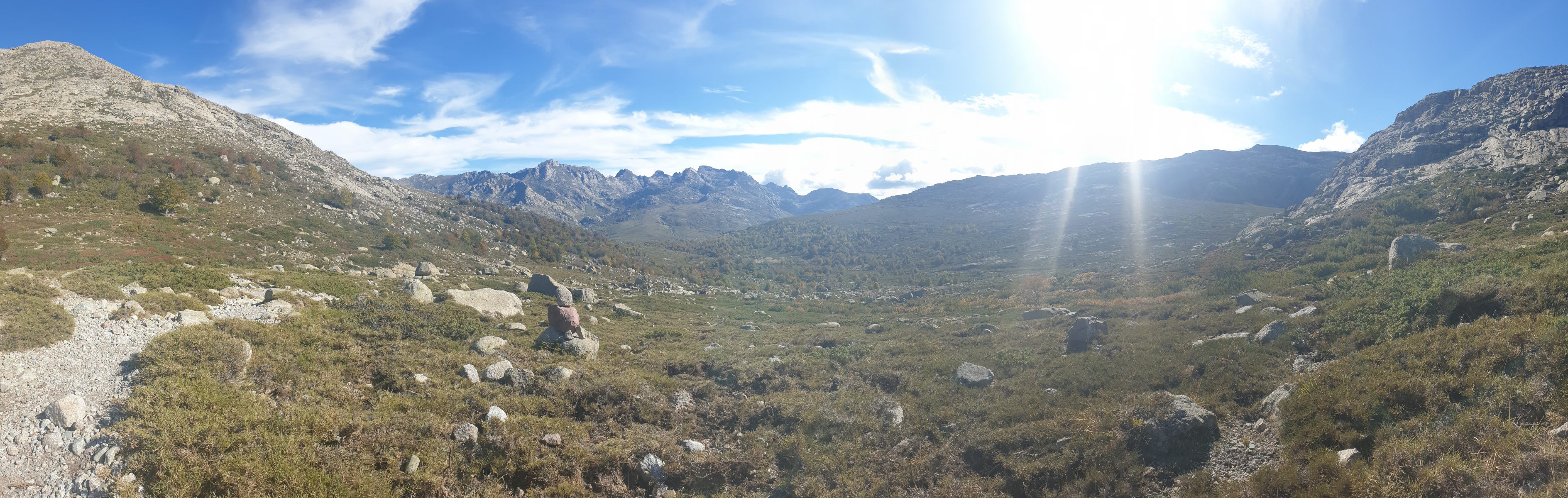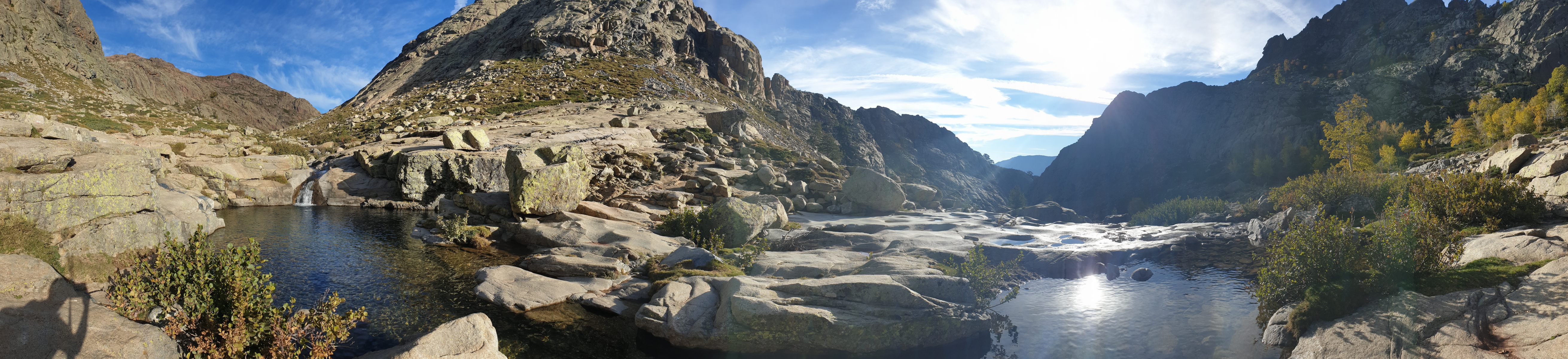 Vom Start weg behält man die Höhe und folgt dem breiten Rücken, bevor man ins Tal des Golo absteigt und dessen Lauf verfolgt. Vermutlich eines der schönsten Flussbäder weit und breit befindet sich dort, wo der Fluss eine Biegung nach Osten macht.