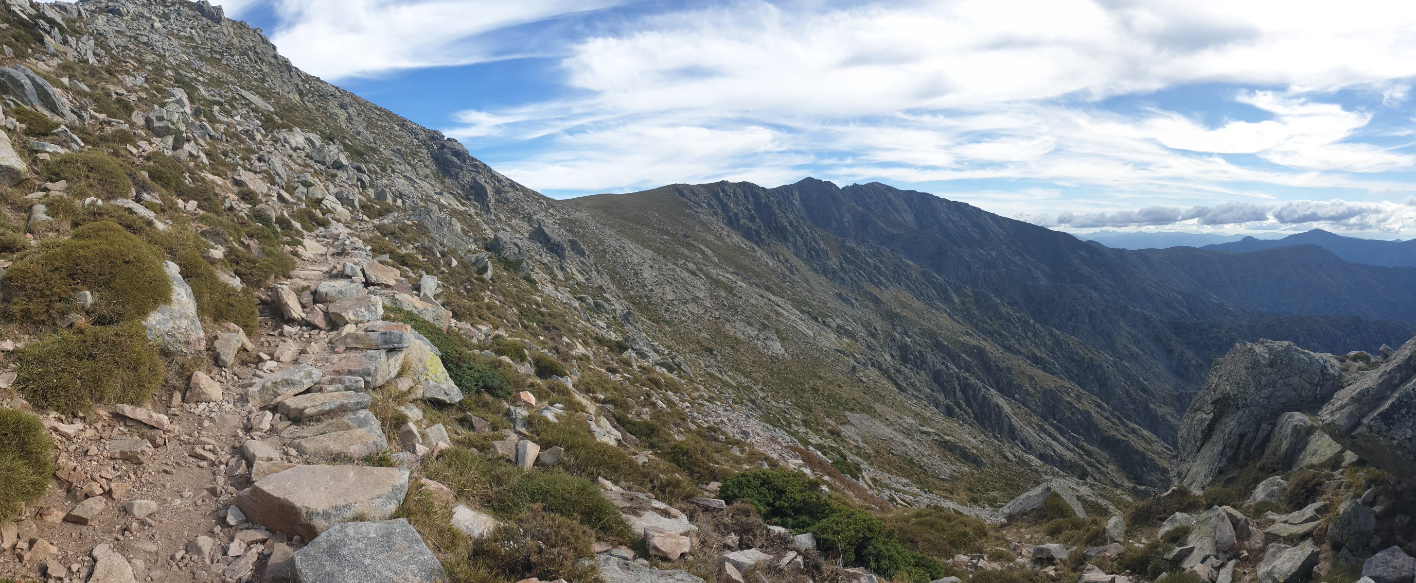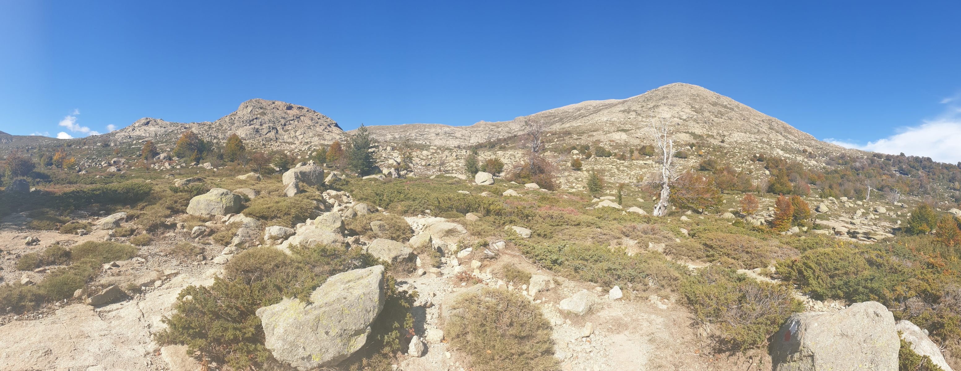 Ich folgte dem Rücken weiter zum Capu di Guagnarola und stieg via der gleichnamigen Bocca in den Talboden ab. Das bescherte mir eine amüsante Turnerei über ein langes Felsgrätchen, jedoch auch ein etwas mühsamer Abstieg im unwegsamen Gelände zur Bocca. Von dort steigt der Mare à Mare Nord ab.