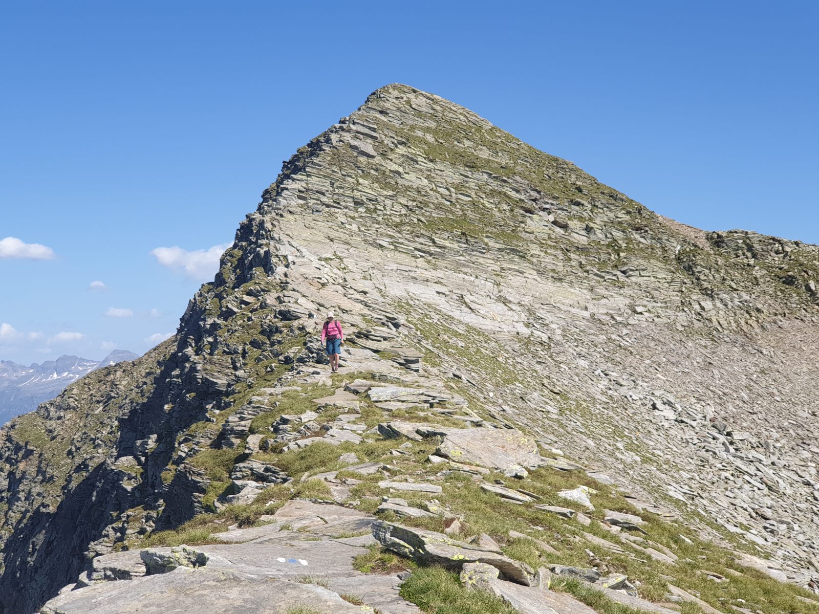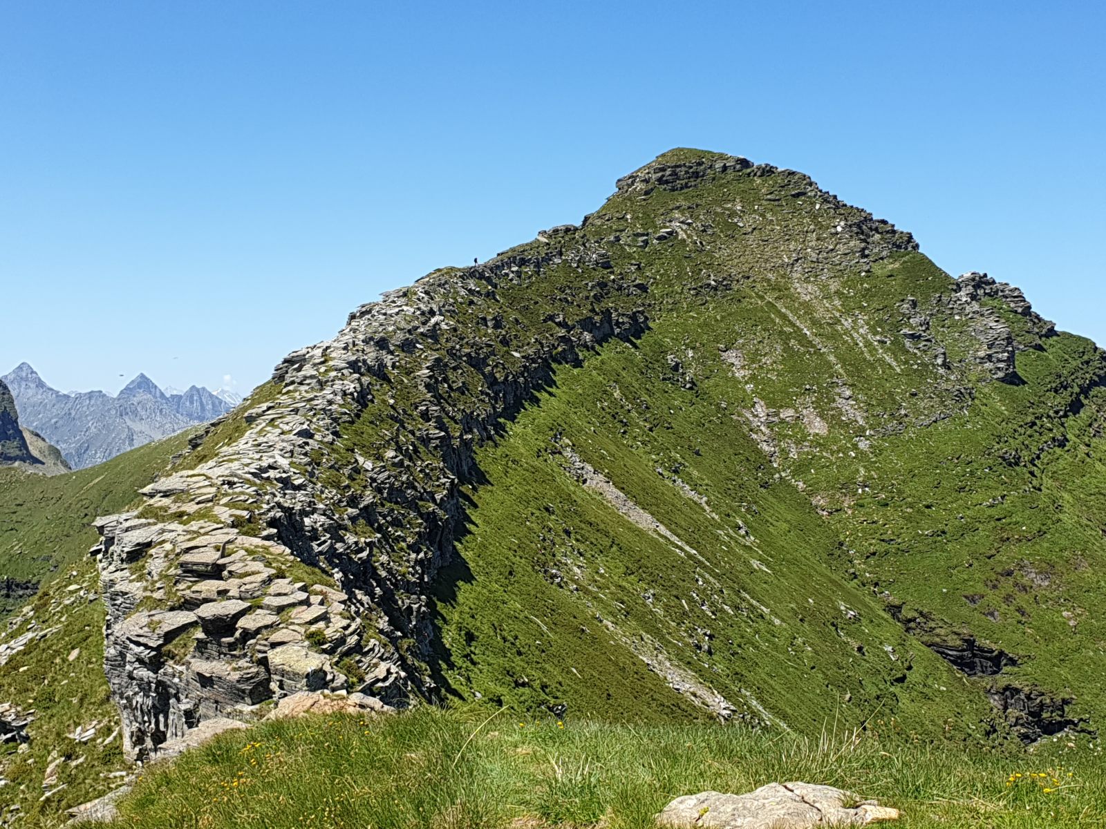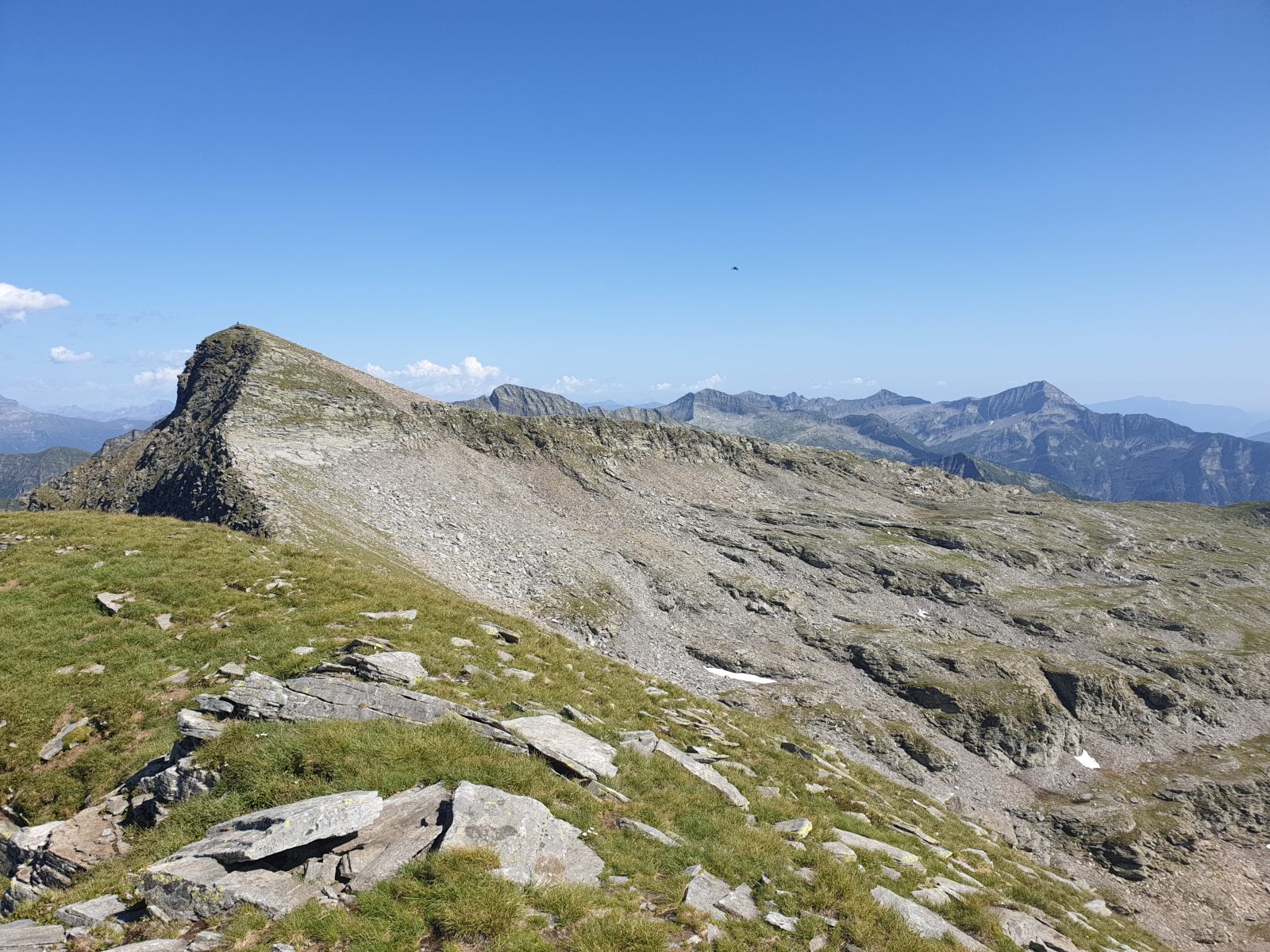 Die Cima del Rosse habe ich von Süden her erreicht, wo ein ausgesetzter Pfad mit einigen Kraxelstellen durch die Felswand führt. Ich meine mich jedoch zu erinnern, dass das eine Variante zur Originalroute war, welche dem Grat entlang führt. Der Weiterweg zur Cima di Gagnone ist dann sehr pittoresk und einfach zu begehen bis kurz vor der Bocchetta dello Scaiee. Dort sucht man über einige steile Platten den einfachsten Abstieg, was auch nicht schwierig ist.